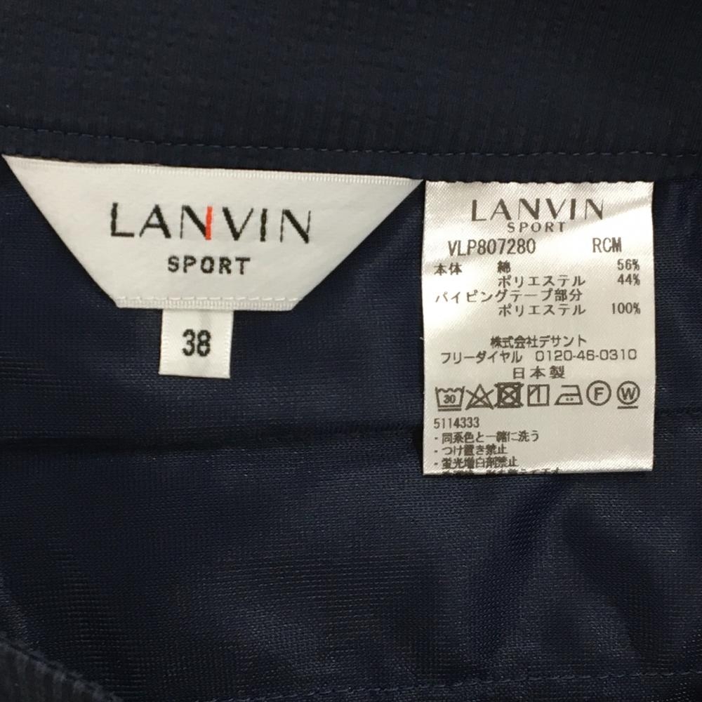 【美品】ランバンスポール パンツ ネイビー×白 サッカー生地 ストレッチ パイピング白 レディース 38(M) ゴルフウェア LANVIN SPORT