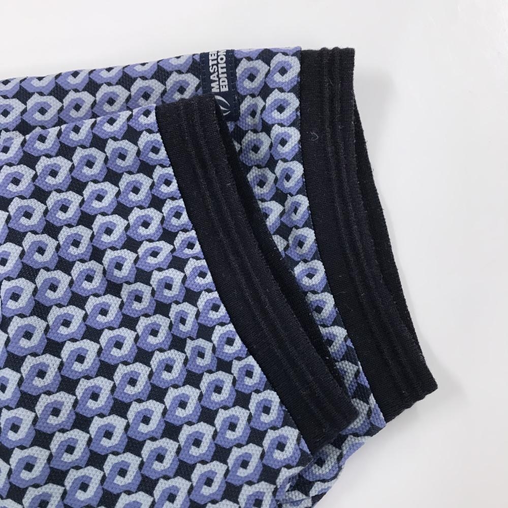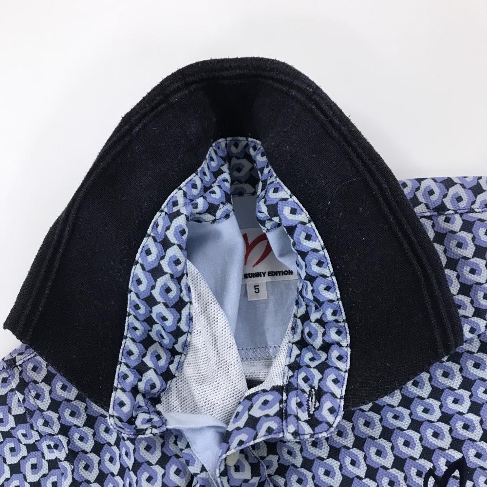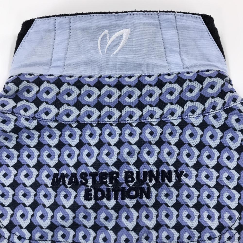マスターバニー 半袖ポロシャツ ダークネイビー×パープル系 総柄 襟裏ロゴ メンズ 5(L) ゴルフウェア MASTER BUNNY EDITION