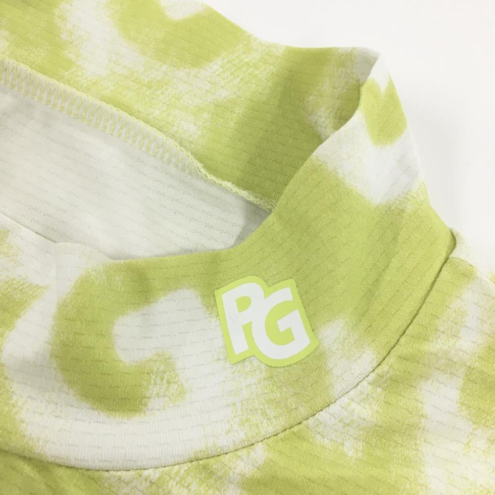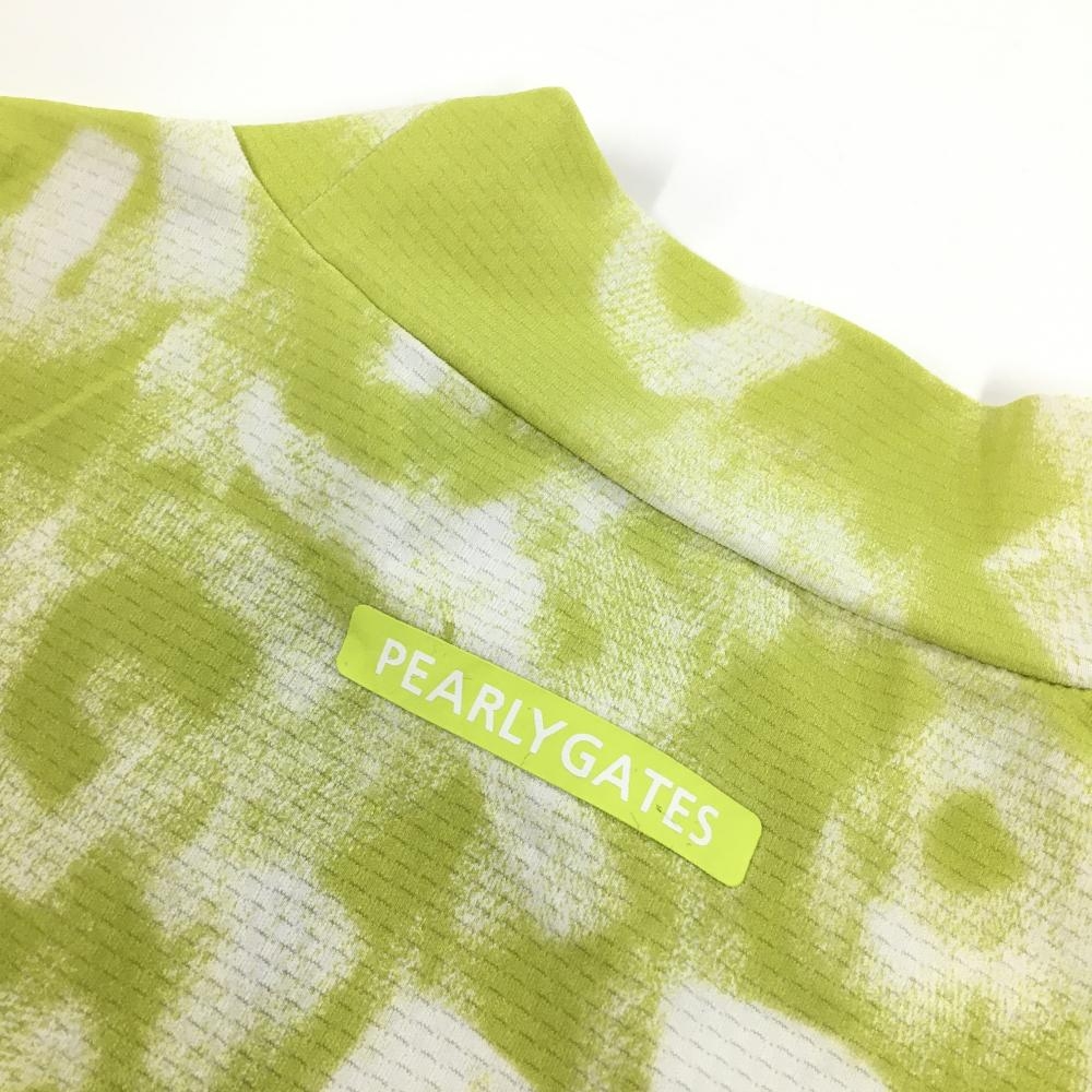 【超美品】パーリーゲイツ 半袖ハイネックシャツ ライムグリーン系×白 英字総柄 メンズ 6(XL) ゴルフウェア 2025年モデル PEARLY GATES