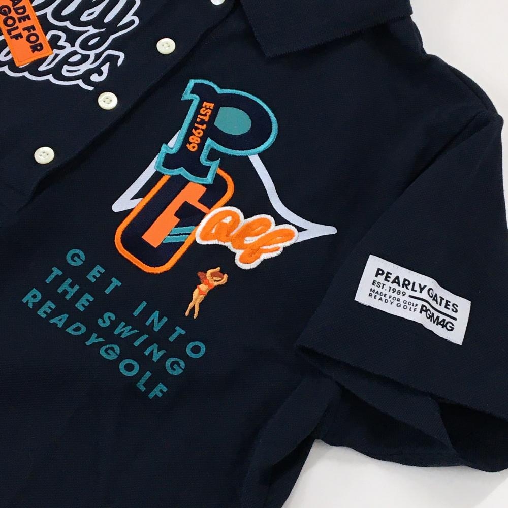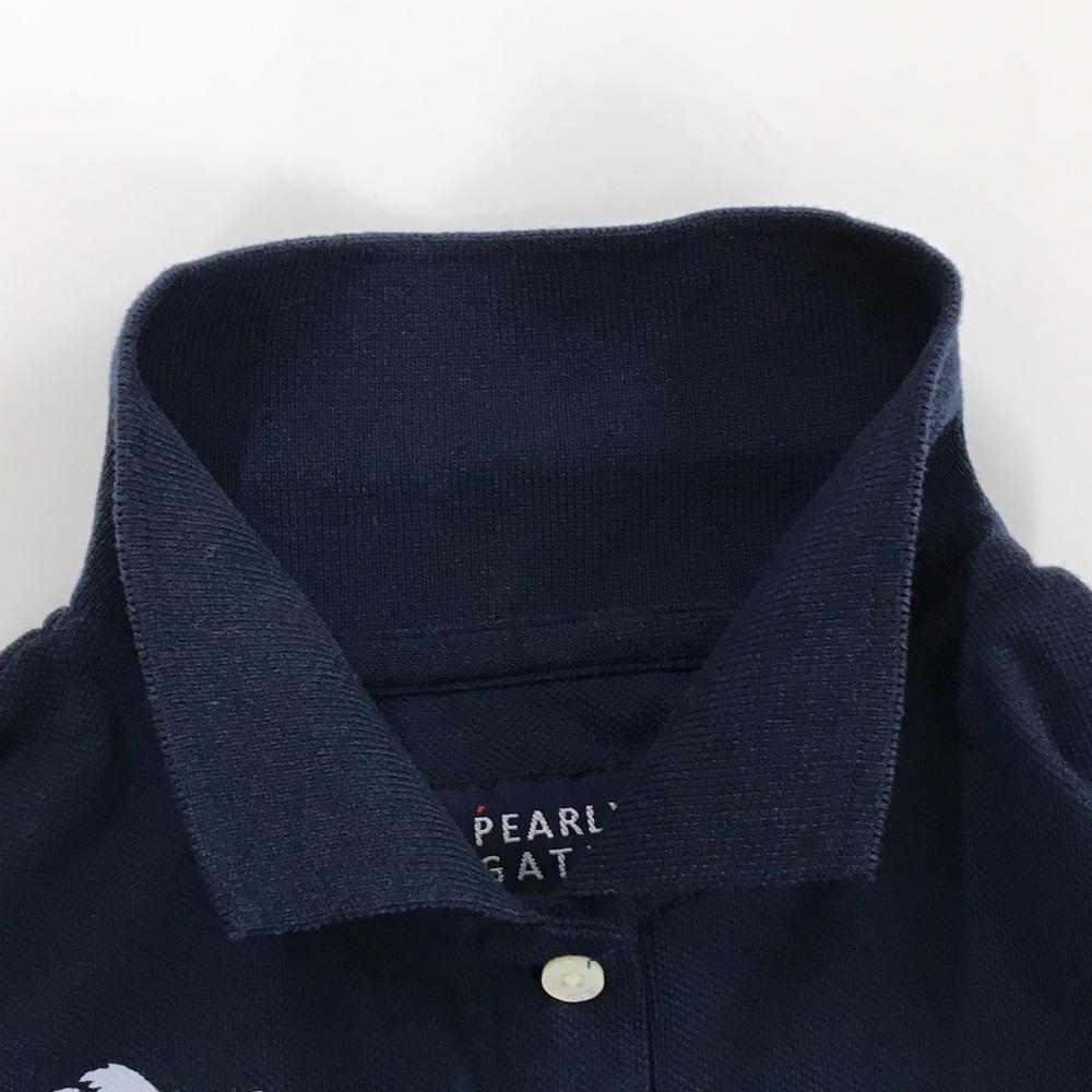 【美品】パーリーゲイツ 半袖ポロシャツ ネイビー×白 ヤシの木 女性 レディース 0(S) ゴルフウェア PEARLY GATES