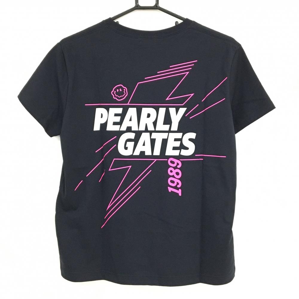 【新品】パーリーゲイツ Tシャツ ネイビー×ピンク トケニコ 背面プリント レディース 0(S) ゴルフウェア PEARLY GATES