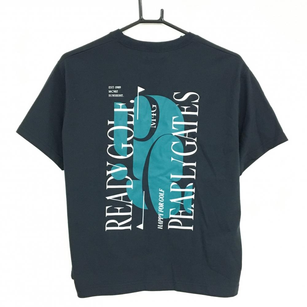 【新品】パーリーゲイツ Tシャツ ネイビー 背面プリントグリーン レディース 0(S) ゴルフウェア 2024年モデル PEARLY GATES