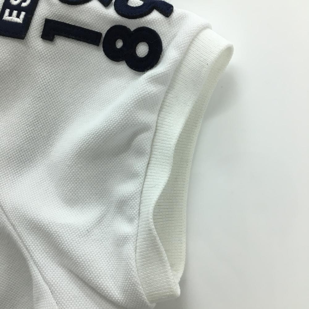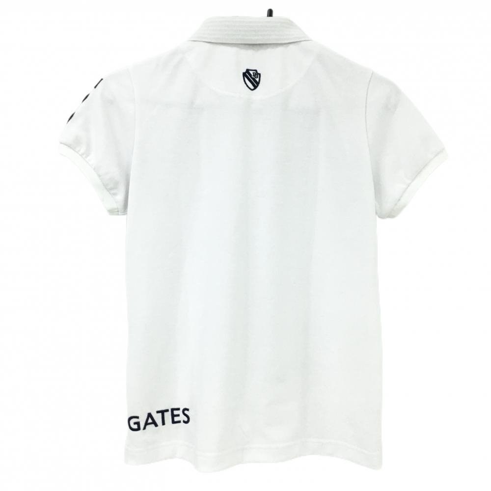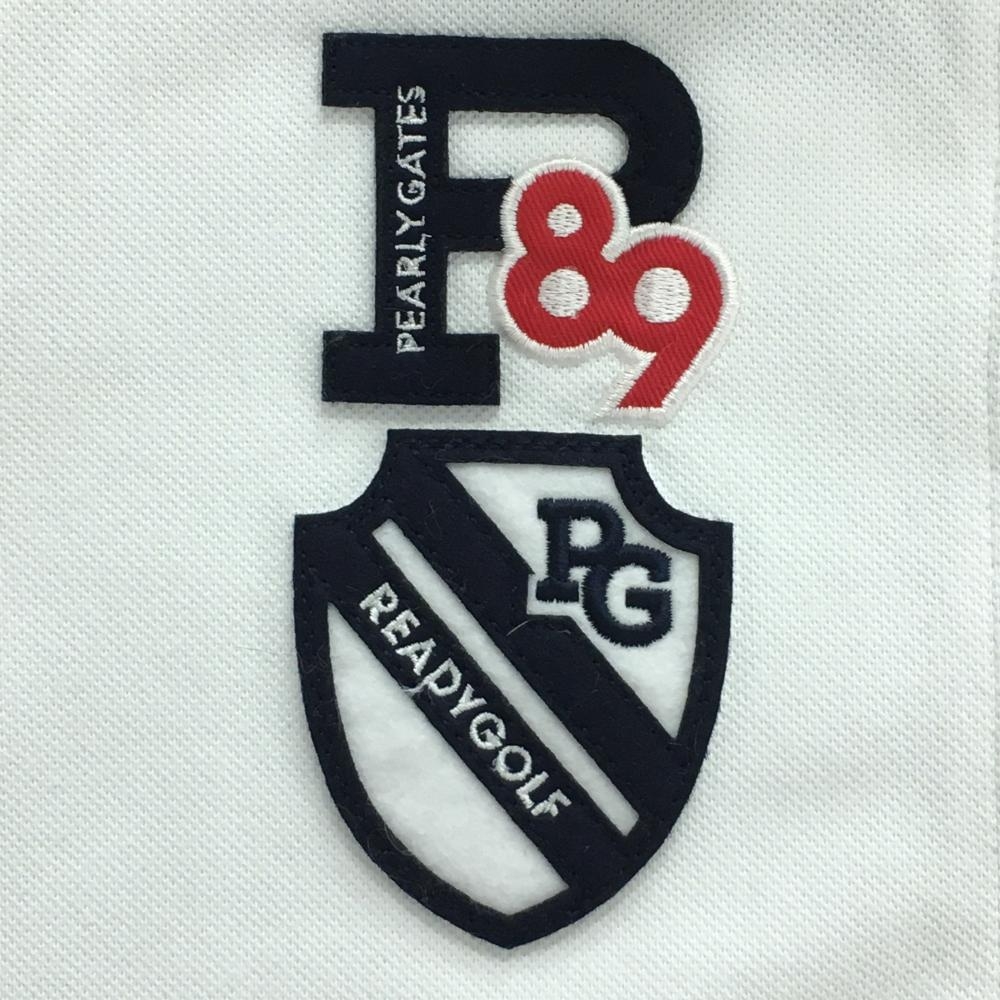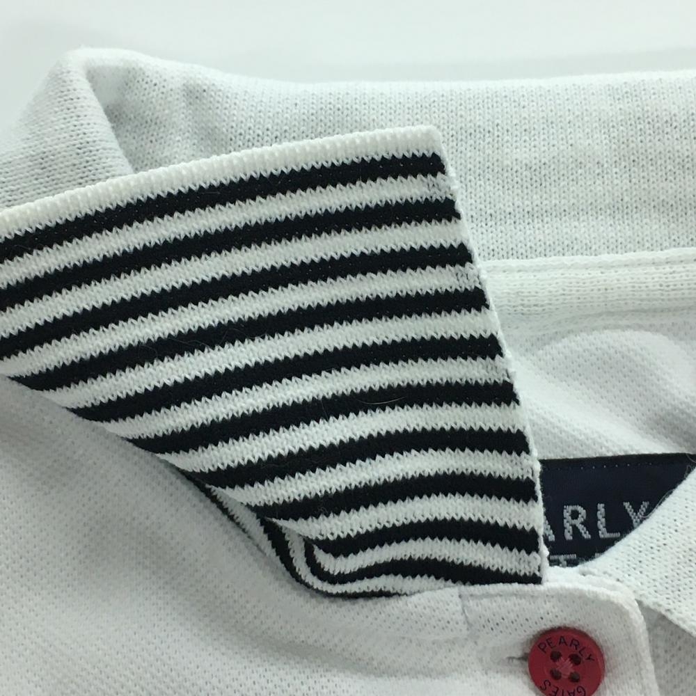 パーリーゲイツ 半袖ポロシャツ 白×ネイビー フェルトワッペン 襟裏ボーダー レディース 0(S) ゴルフウェア PEARLY GATES