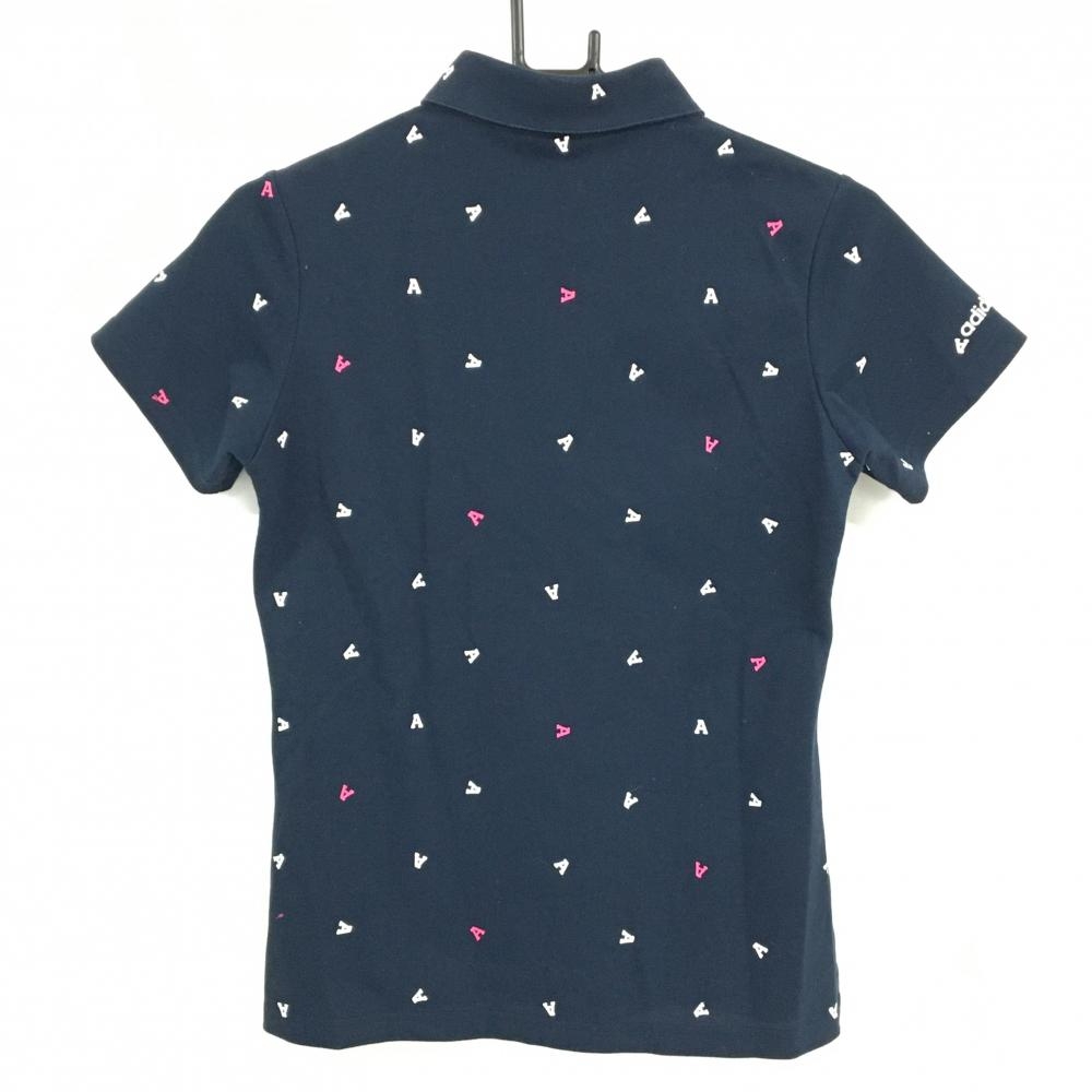 アディダス 半袖ポロシャツ ネイビー×白 A総柄 ロゴ刺しゅう レディース M ゴルフウェア adidas