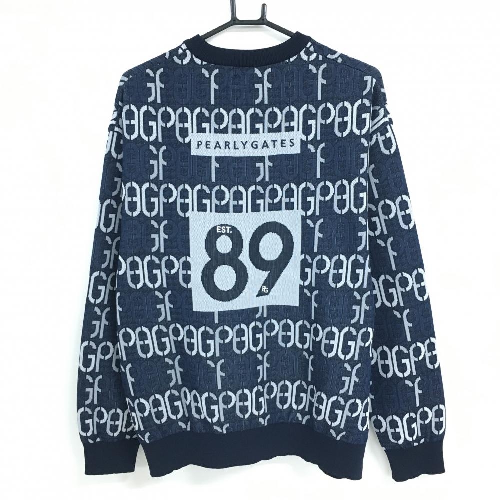 【超美品】パーリーゲイツ セーター ネイビー×白 英字総柄 ニット メンズ 5(L) ゴルフウェア 2024年モデル PEARLY GATES