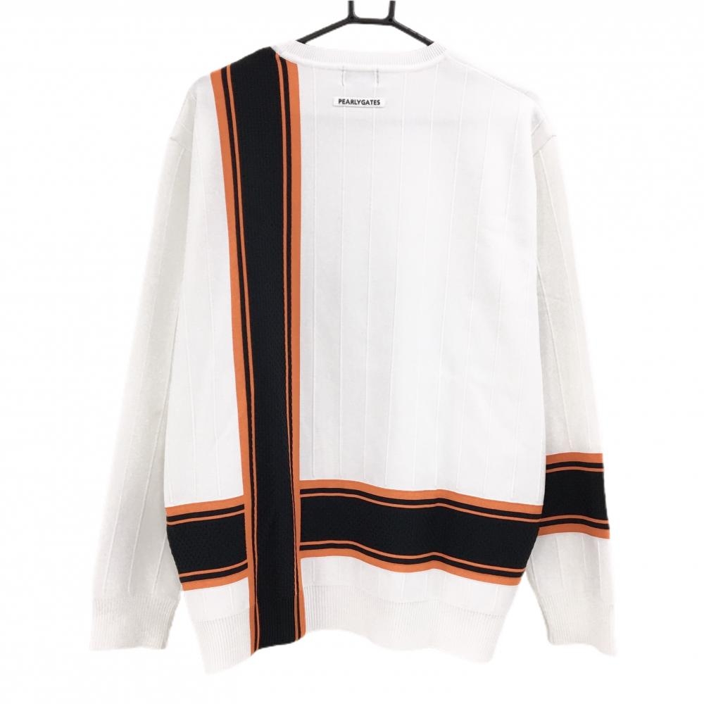 【美品】パーリーゲイツ セーター 白×黒×オレンジ ストライプ編み ニット メンズ 6(XL) ゴルフウェア 2024年モデル PEARLY GATES