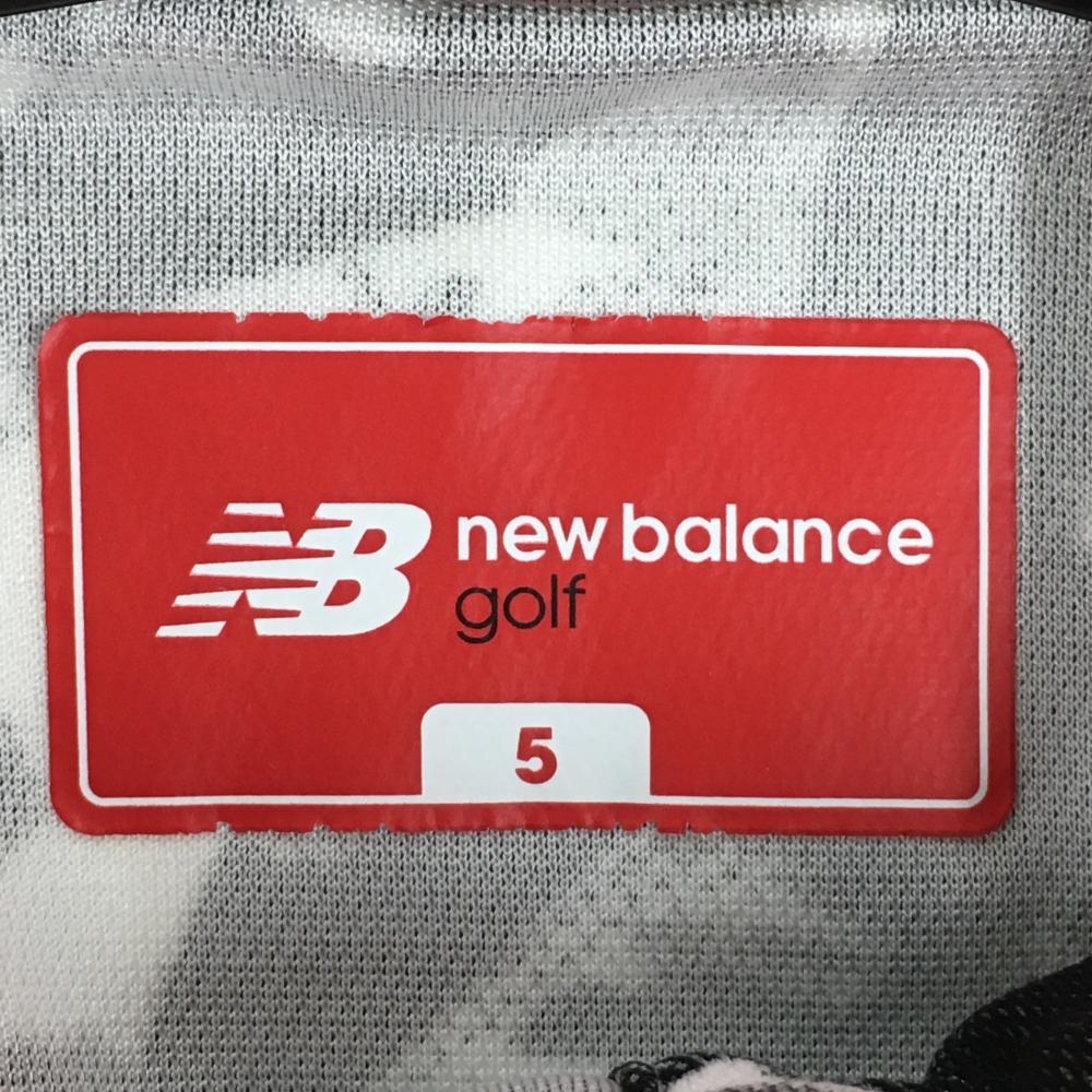 【美品】ニューバランスゴルフ 半袖ポロシャツ 白×黒 総柄 メンズ 5(L) ゴルフウェア New Balance