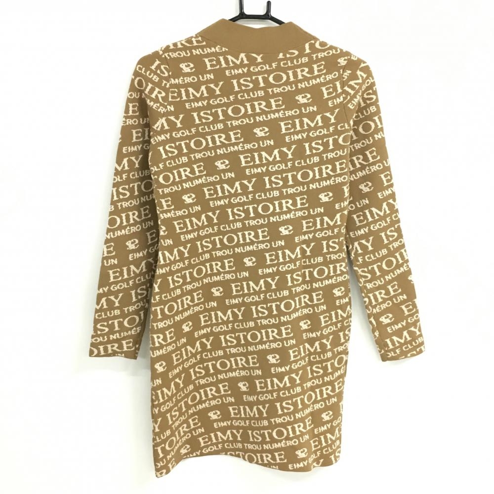 【超美品】エイミーゴルフ ニットワンピース ライトブラウン×ベージュ 英字ロゴ総柄 レディース F ゴルフウェア EIMY GOLF