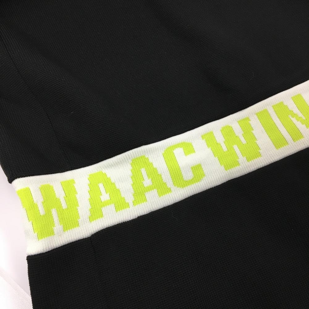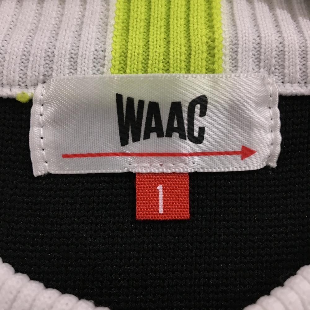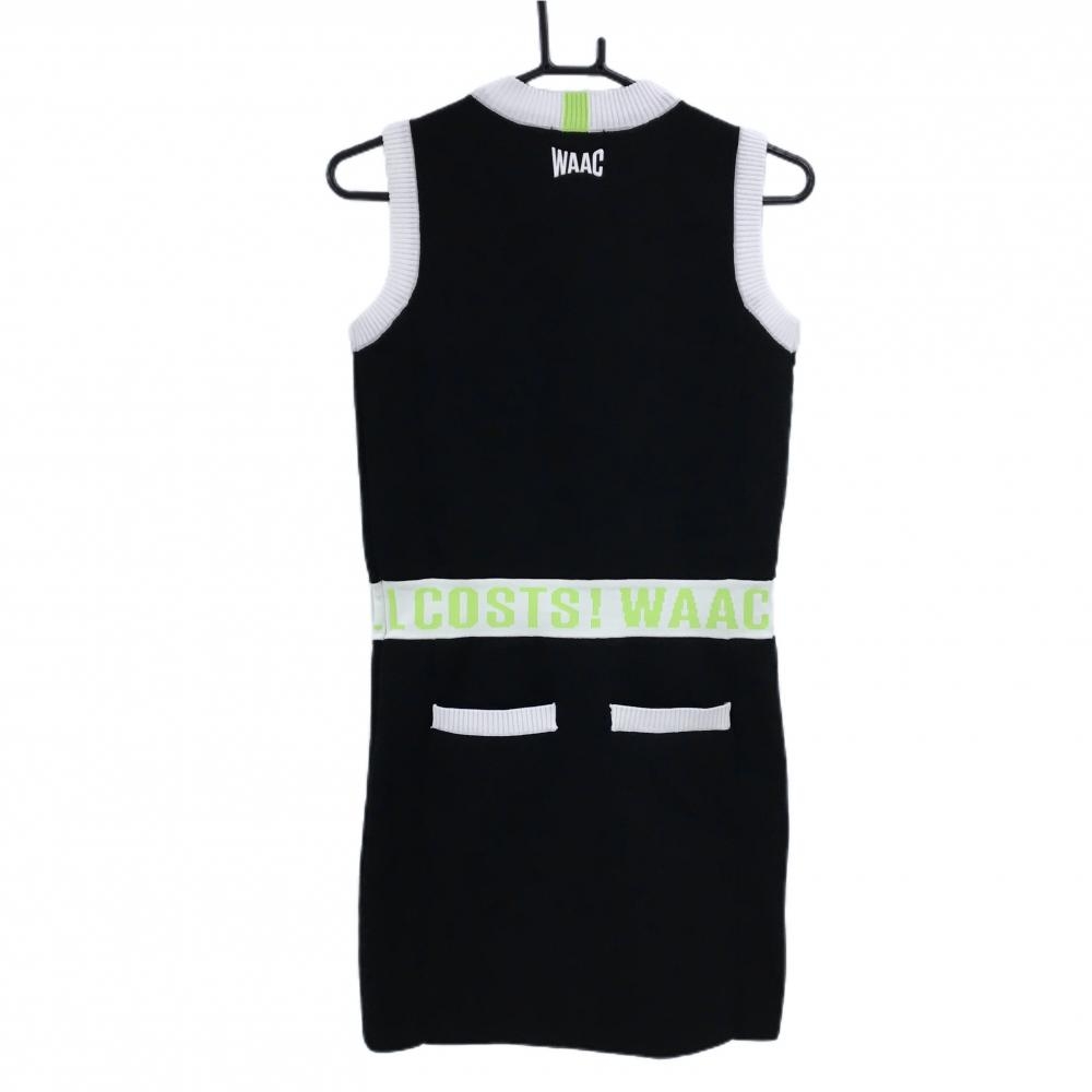 【超美品】ワック ノースリーブニットワンピース 黒×白 胸ロゴ ウエスト英字ロゴ レディース 1(S) ゴルフウェア WAAC