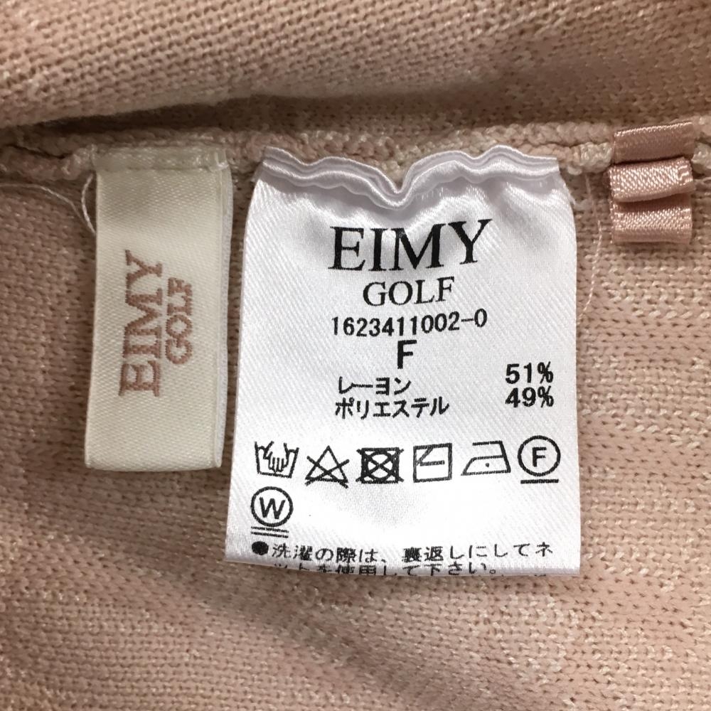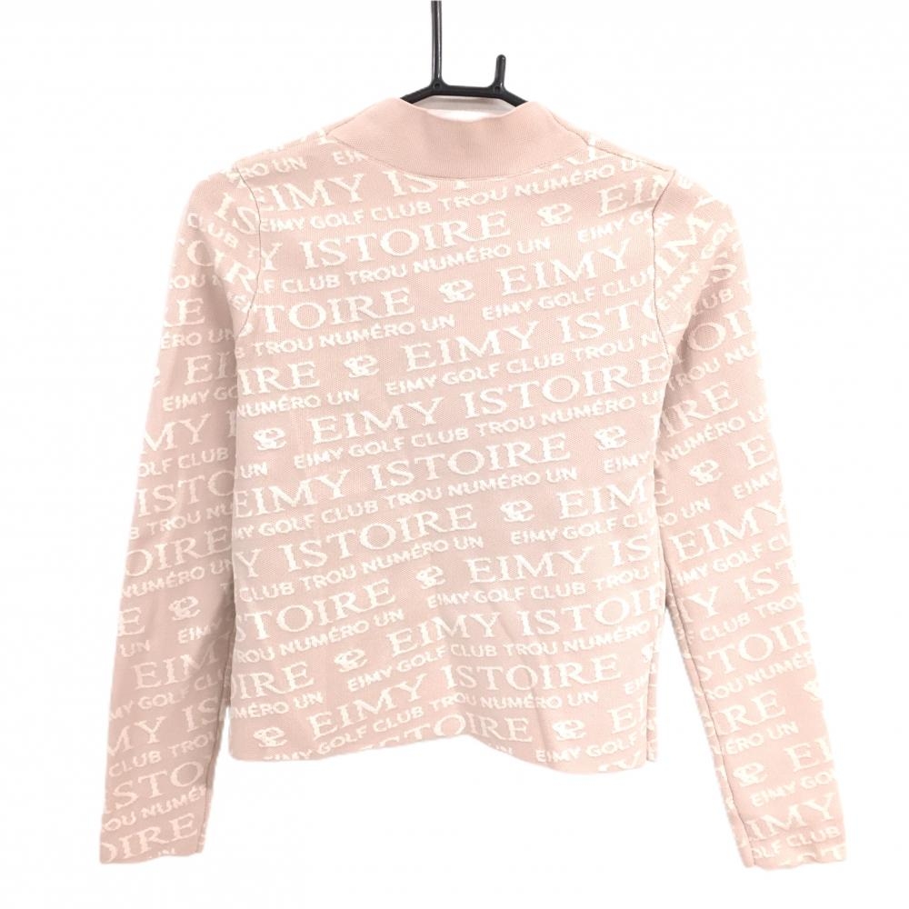 【美品】エイミーゴルフ ハイネックセーター スモーキーピンク×白系 英字総柄 ニット レディース F ゴルフウェア EIMY GOLF
