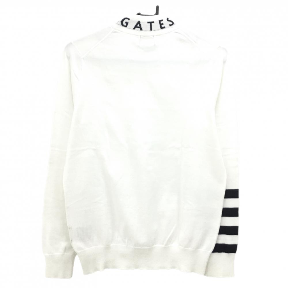 【美品】パーリーゲイツ ハイネックセーター 白×黒 ネックロゴ コットン混 ニット レディース 1(M) ゴルフウェア PEARLY GATES