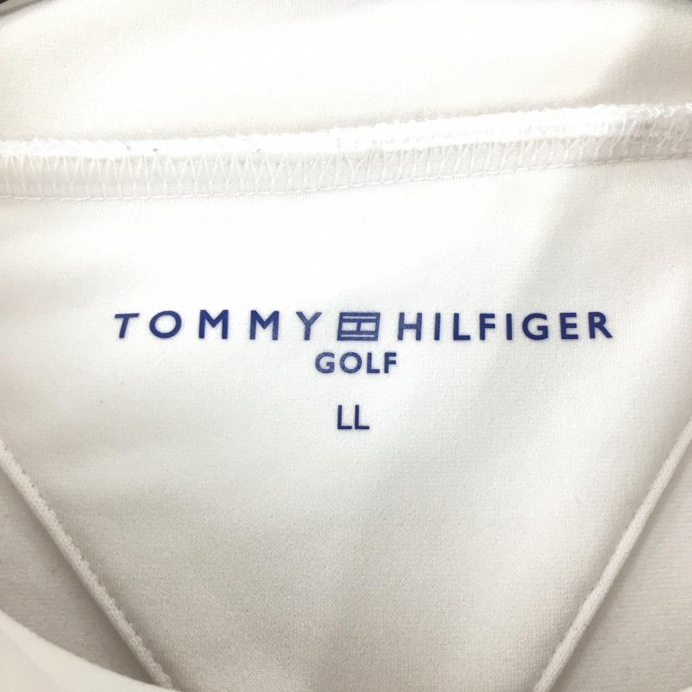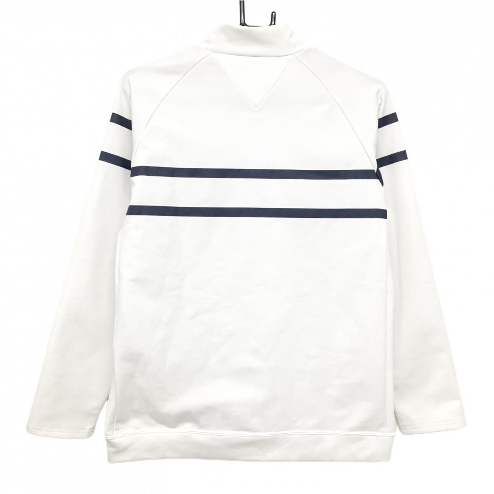 【超美品】トミーヒルフィガー 長袖ハイネックシャツ 白×ネイビー 胸・袖ライン レディース LL ゴルフウェア Tommy Hilfiger Golf