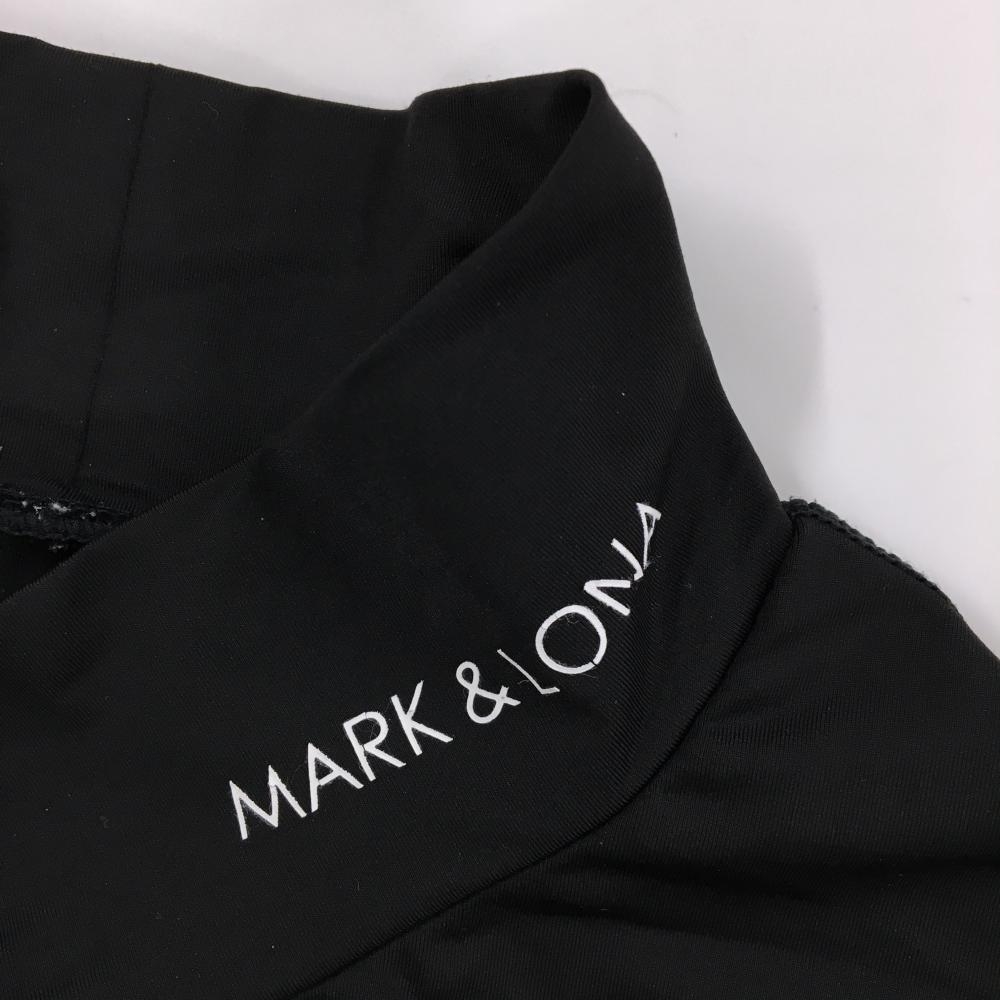 【美品】マークアンドロナ ハイネックインナーシャツ 黒×白 ロゴプリント ストレッチ レディース 38(M) ゴルフウェア MARK&LONA