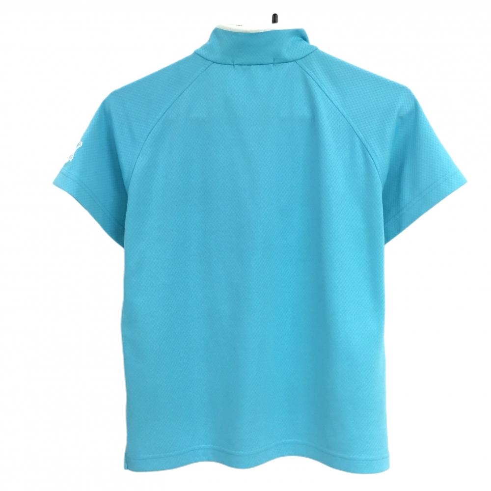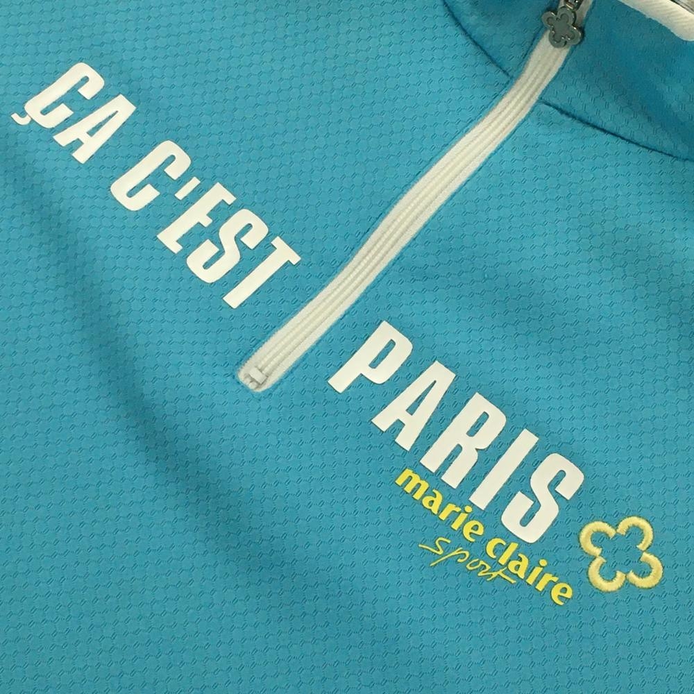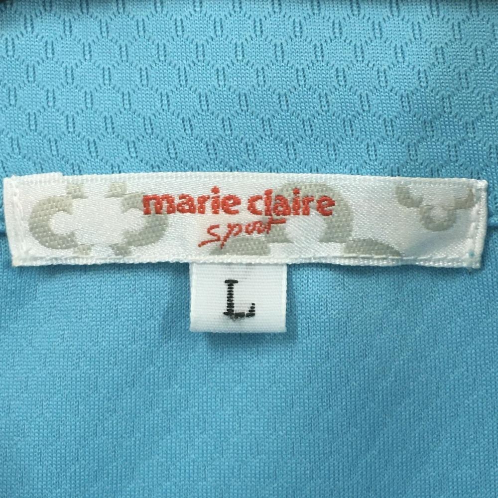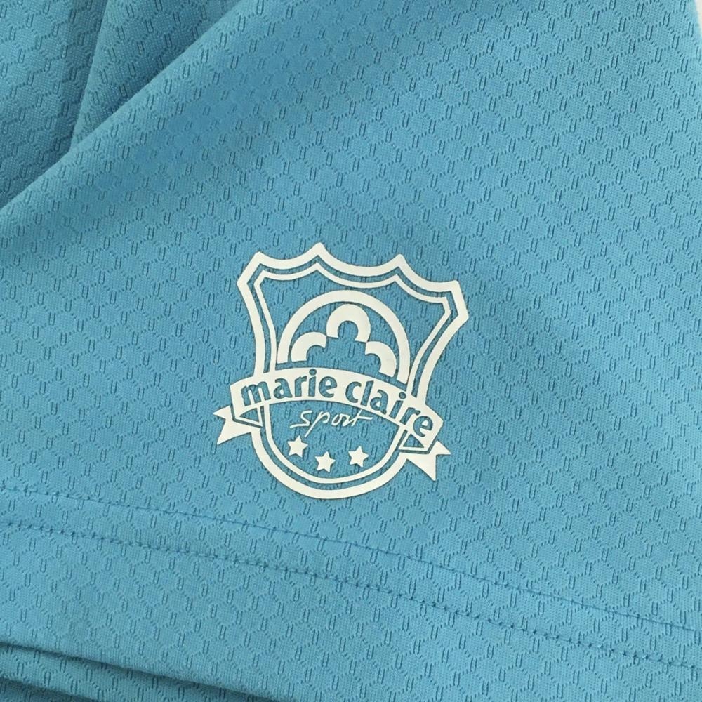 マリクレールスポール 半袖ハイネックシャツ ライトブルー×白 織生地 フロントロゴ レディース L ゴルフウェア marie claire