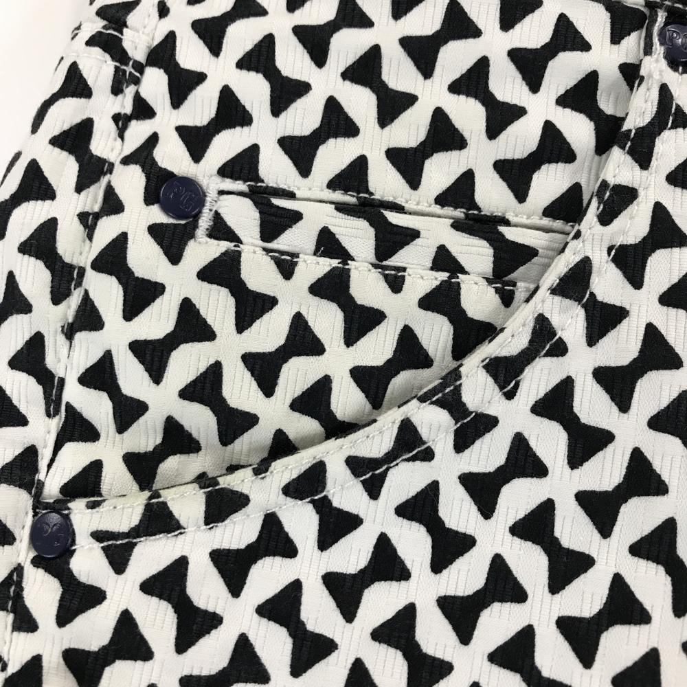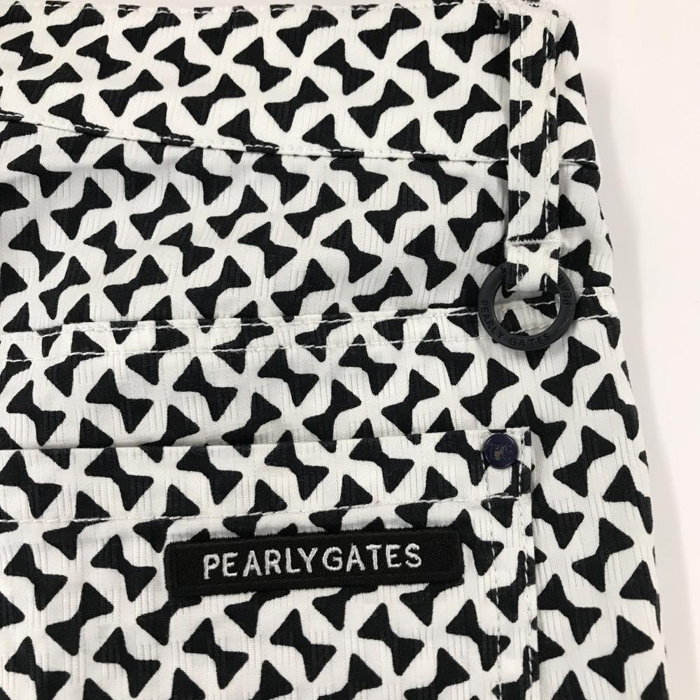 【美品】パーリーゲイツ パンツ 白×ダークネイビー リボン総柄 30周年 レディース 00(XS) ゴルフウェア PEARLY GATES