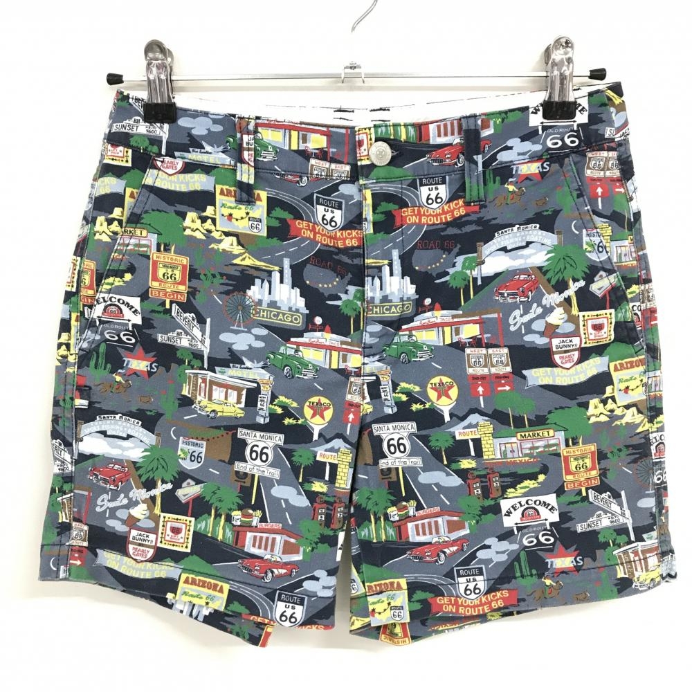 【美品】ジャックバニー ショートパンツ グレー×マルチカラー 総柄 クルマ レディース 1(M) ゴルフウェア Jack Bunny