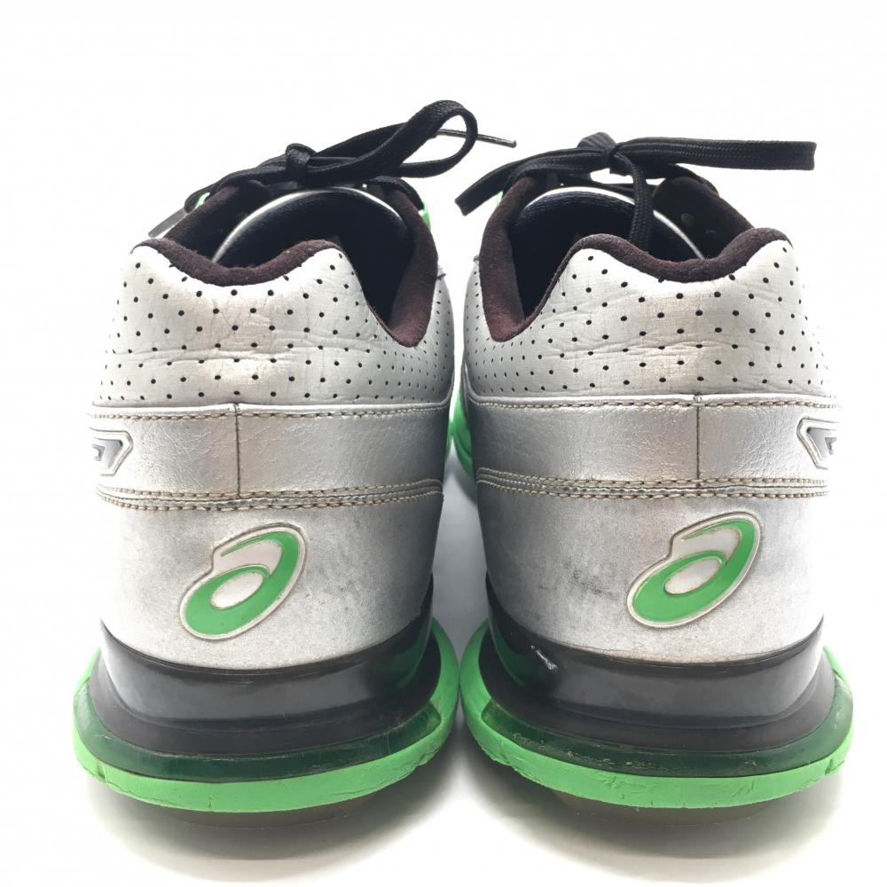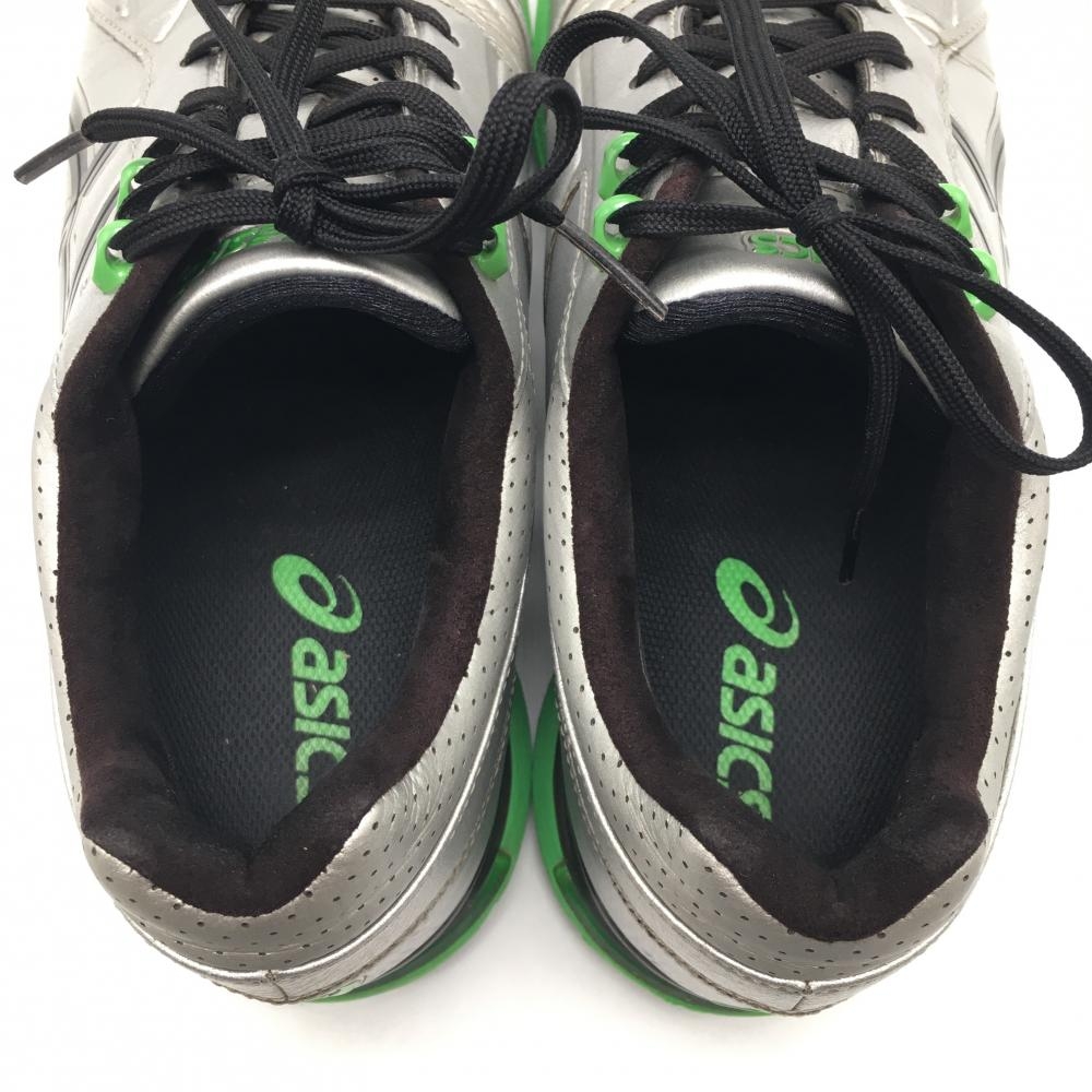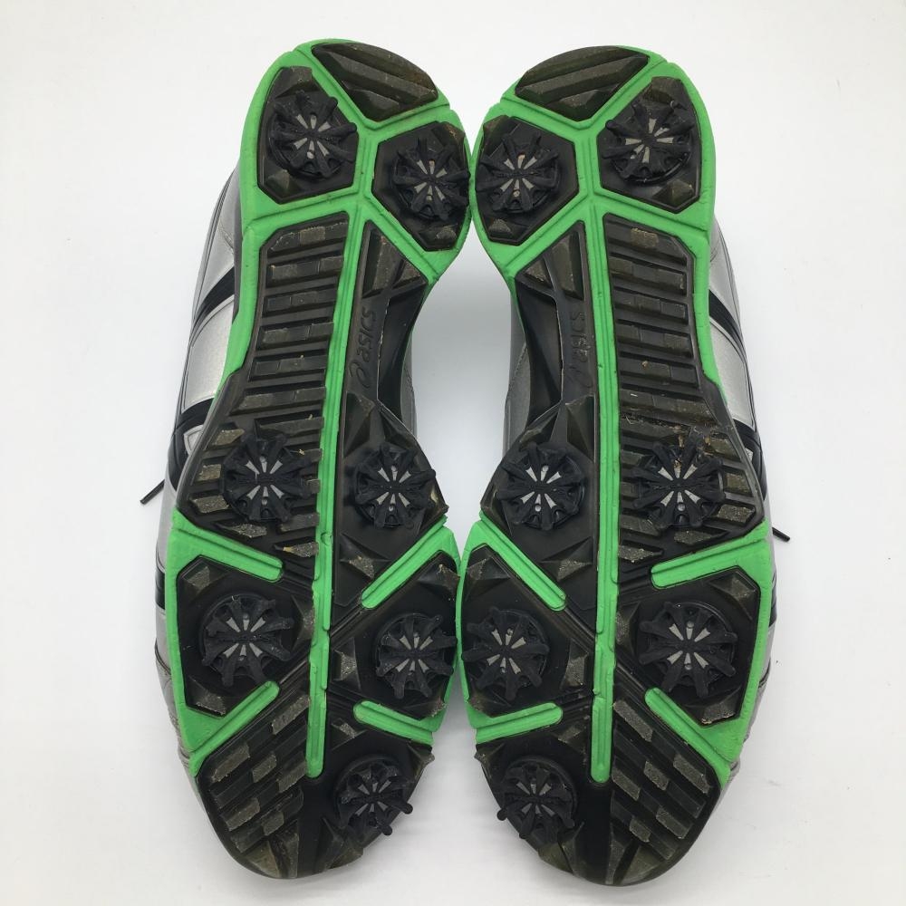 【美品】アシックス ゴルフシューズ シルバー×黒×グリーン TGN908 ゲルエースプロ FG-RF メンズ 26.5 ゴルフウェア asics