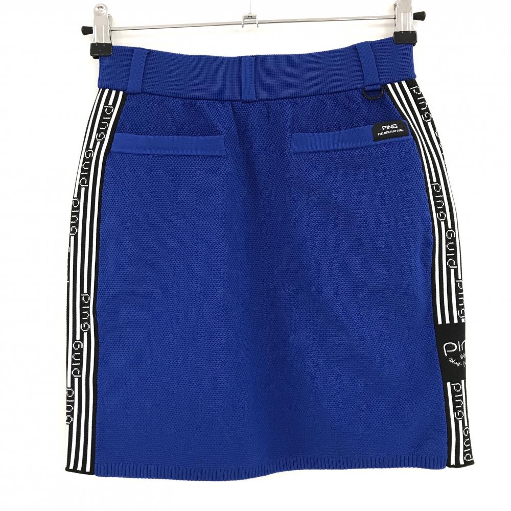 【超美品】ピン ニットスカート ブルー×黒×白 サイドライン ウエストゴム ストレッチ レディース SS ゴルフウェア 2024年モデル PING
