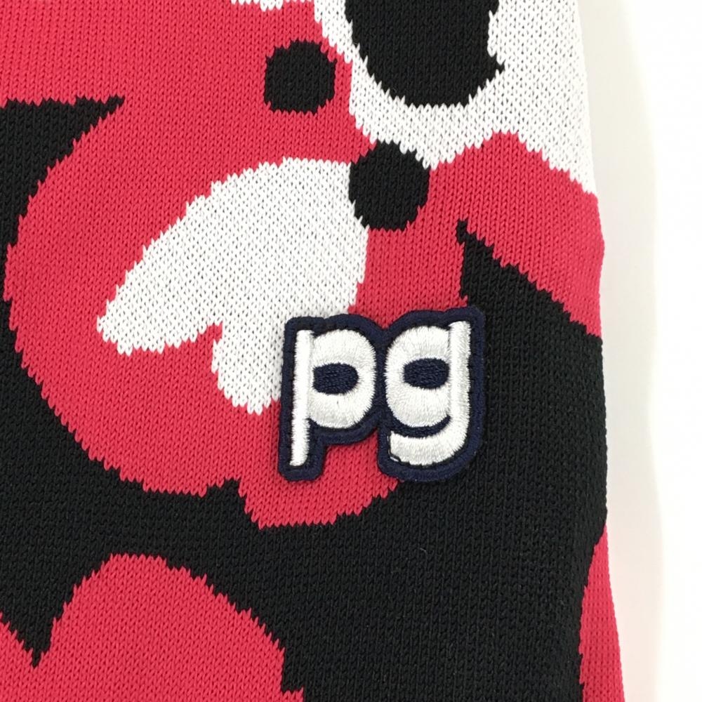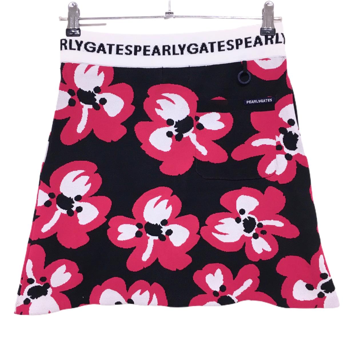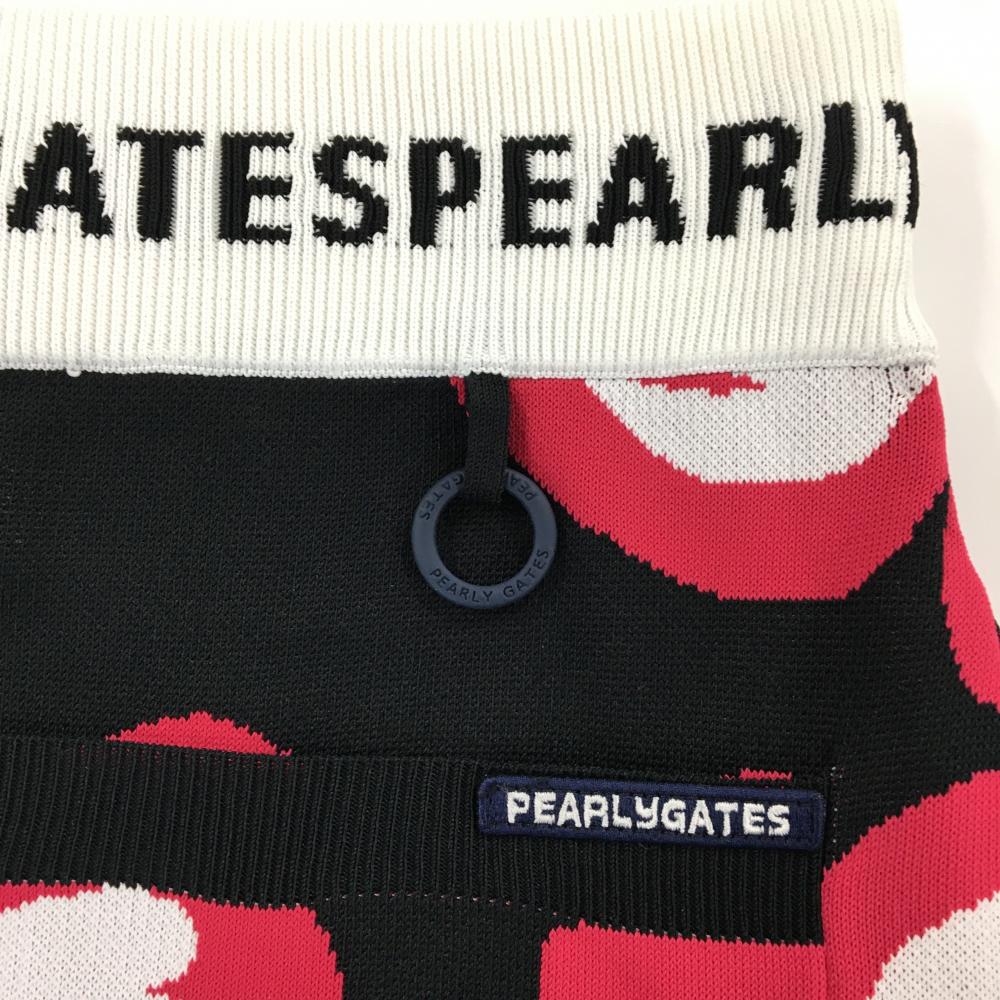 【美品】パーリーゲイツ ニットスカート 黒×ピンク×白 花柄 ウエストゴム レディース 0(S) ゴルフウェア PEARLY GATES