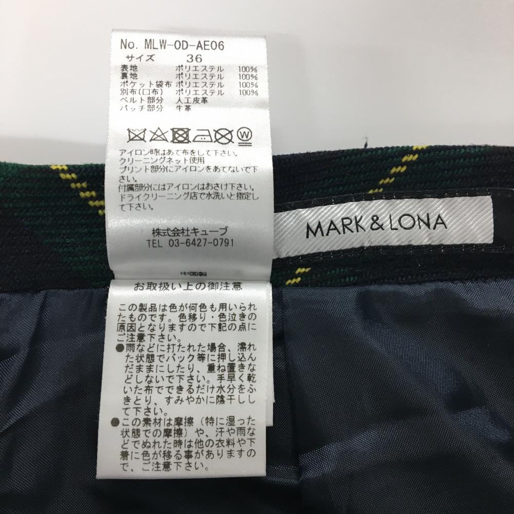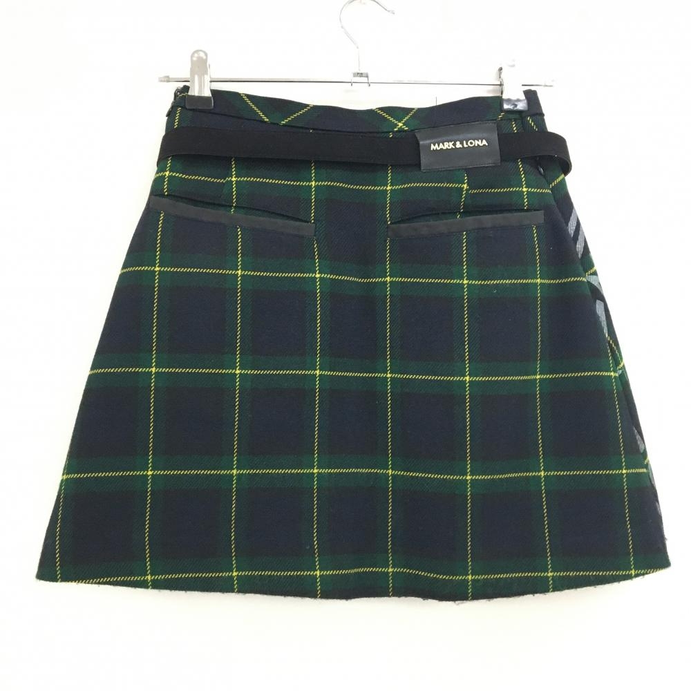 【美品】マークアンドロナ スカート グリーン×黒×イエロー チェック 一部プリーツ レディース 36(S) ゴルフウェア MARK&LONA