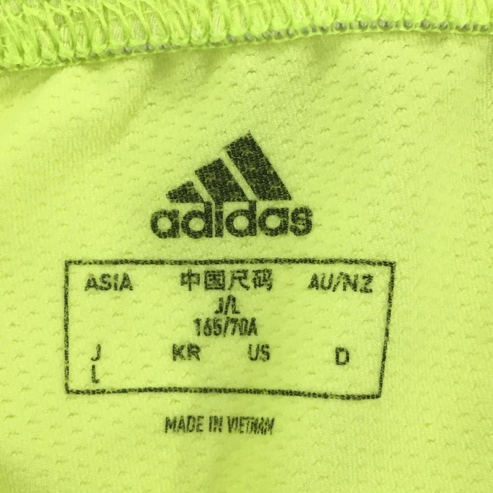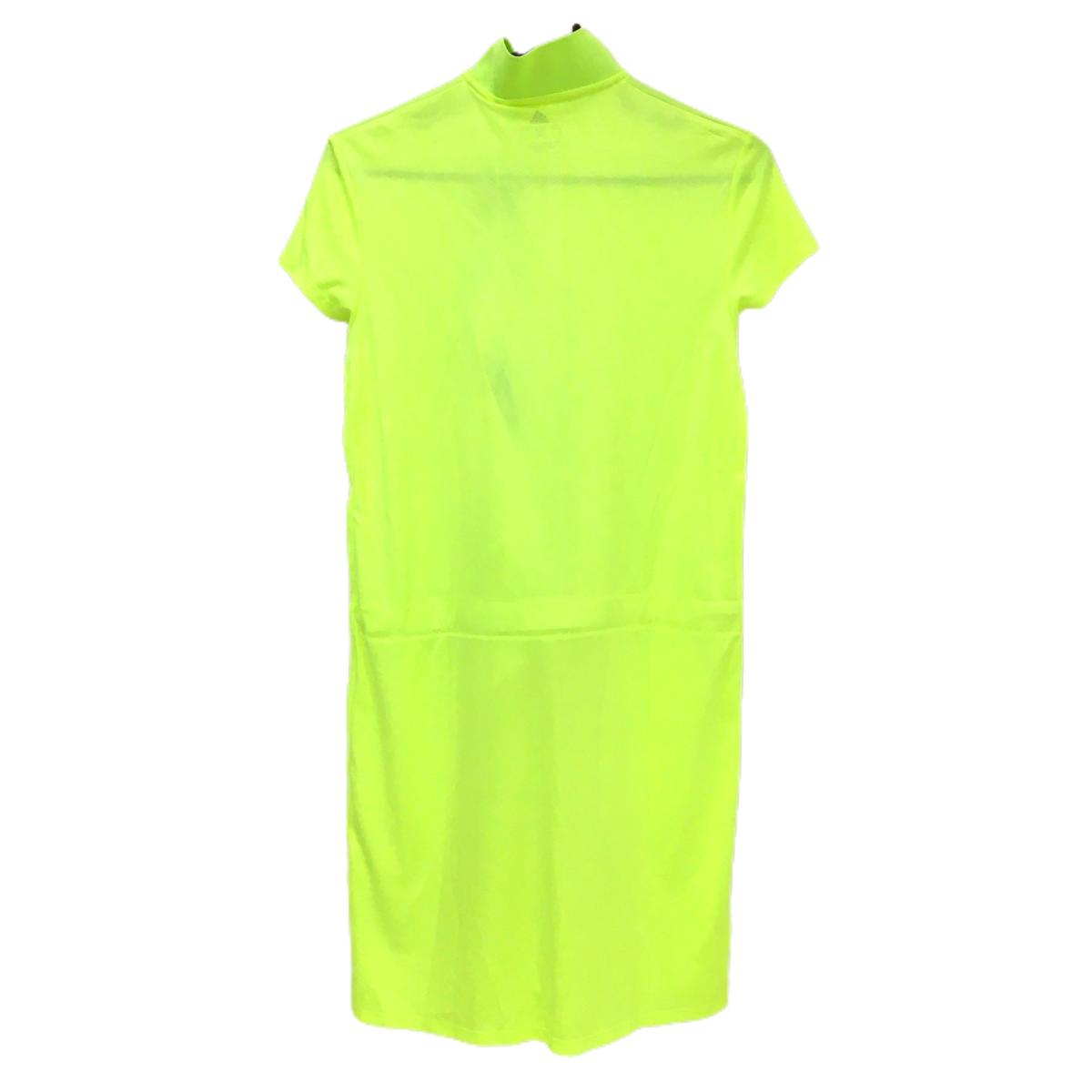 【新品】アディダス 半袖ハイネックワンピース 蛍光イエロー 総柄地模様 サイド3ライン レディース L ゴルフウェア adidas