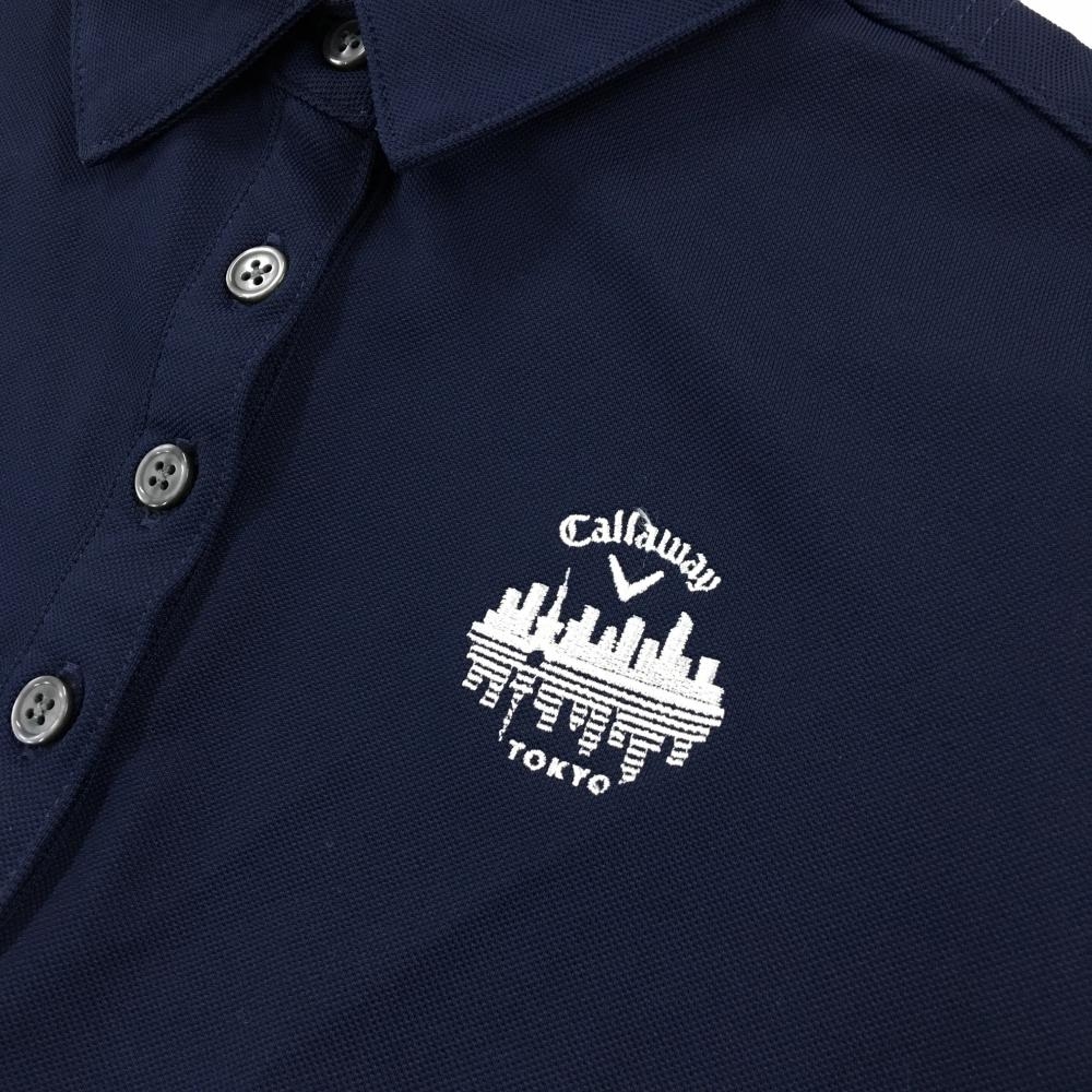 【美品】キャロウェイ 半袖ポロワンピース ネイビー×白 スカート部花柄 ベルト風 レディース M ゴルフウェア Callaway