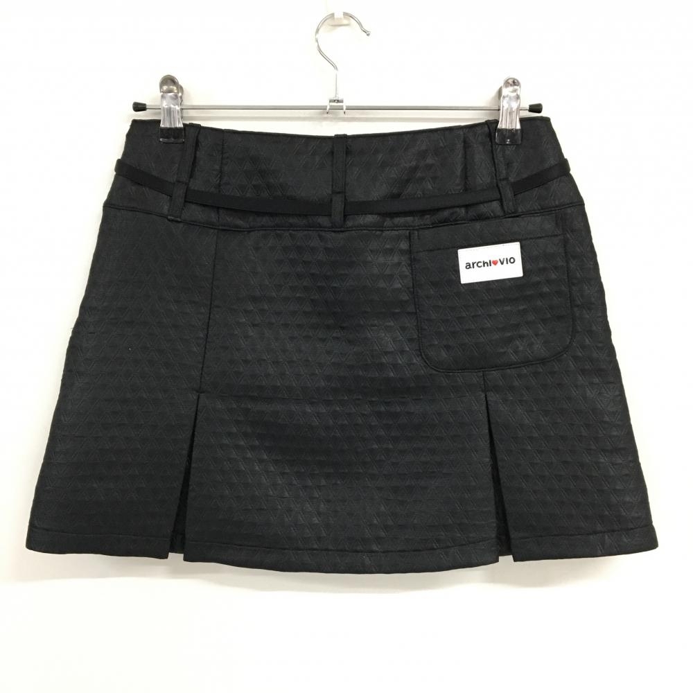 【超美品】アルチビオ スカート 黒 総柄 ゴムベルト付 裏地付き ボックスプリーツ レディース 38(M) ゴルフウェア 2025年モデル archivio