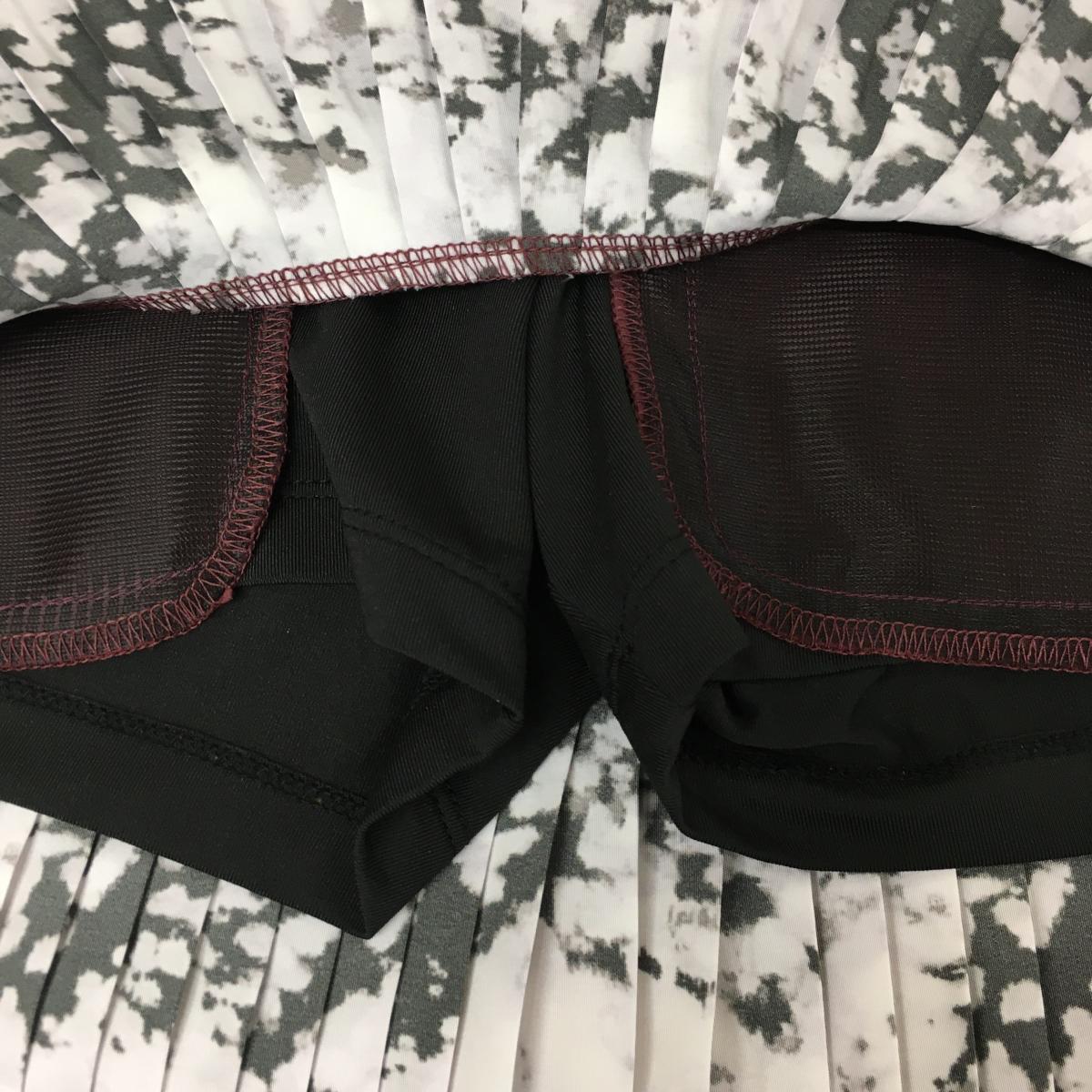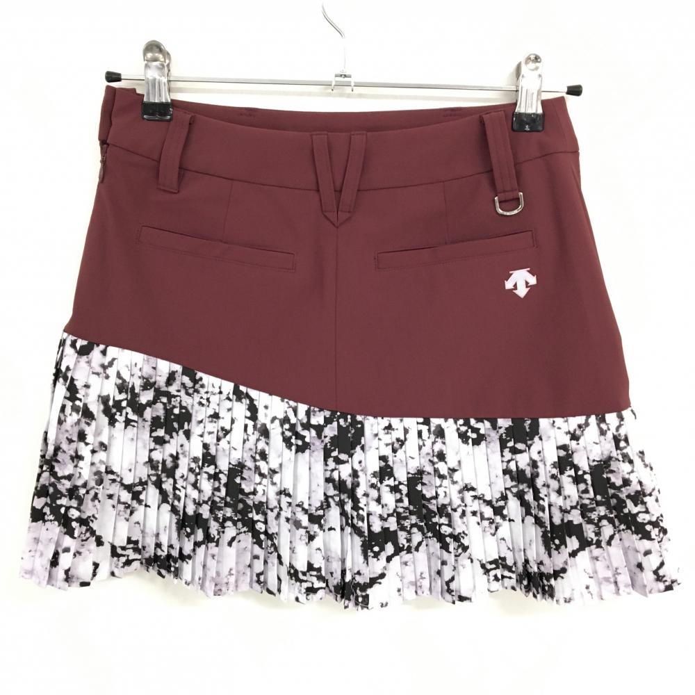 【超美品】デサントゴルフ スカート ボルドー×白×黒 LUXE COLLECTION 裾柄 レディース 58/SS ゴルフウェア DESCENTE