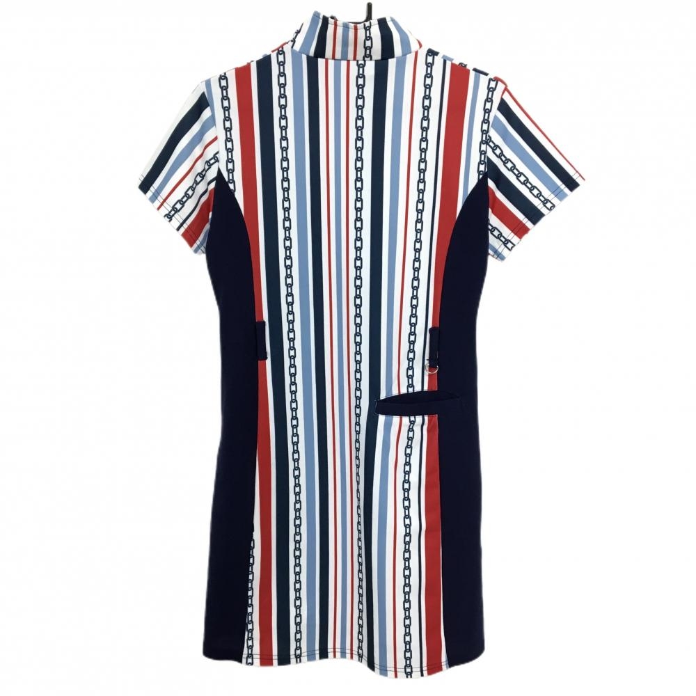 【美品】キスオンザグリーン 半袖ハイネックワンピース 白×ネイビー レディース 3(L) ゴルフウェア kiss on the green