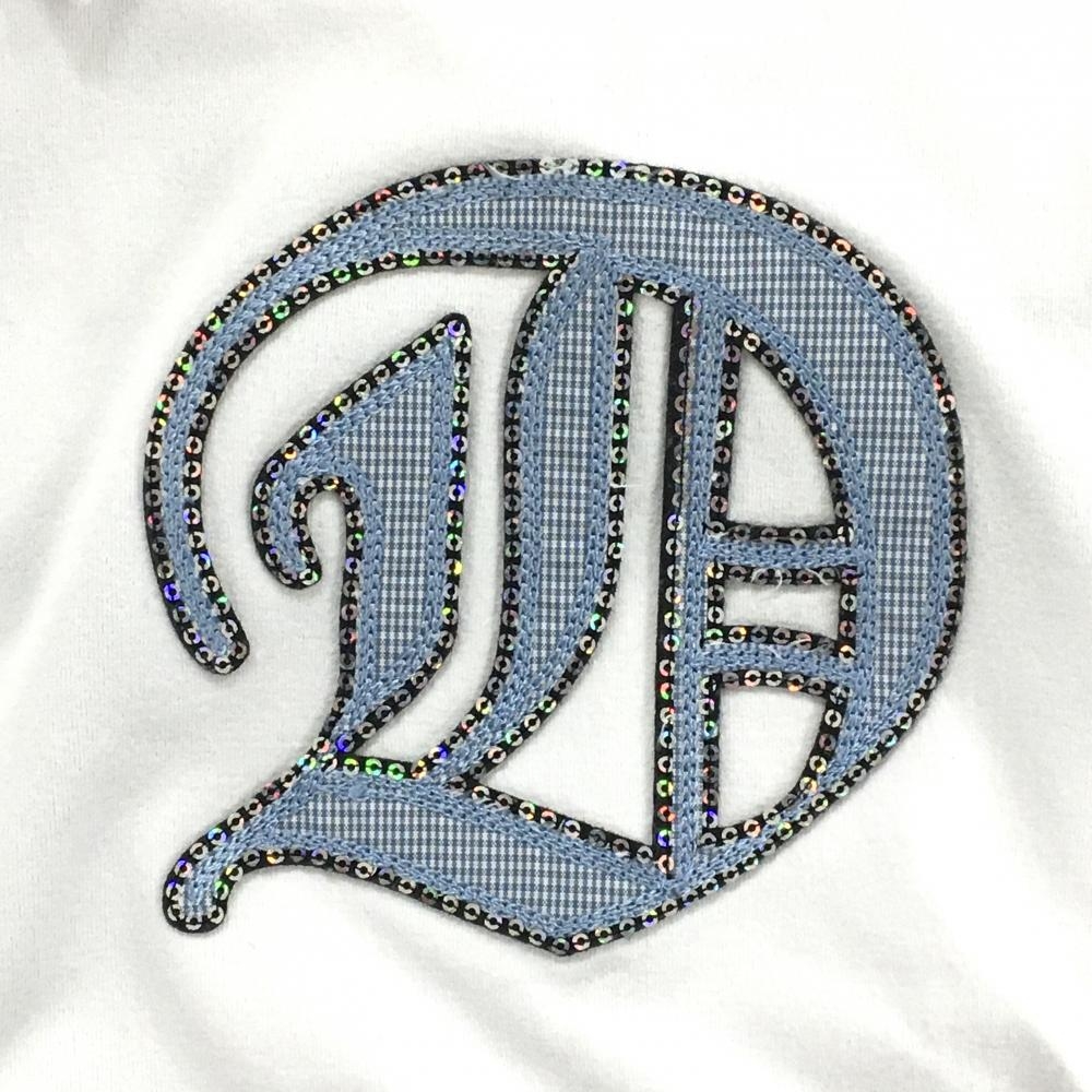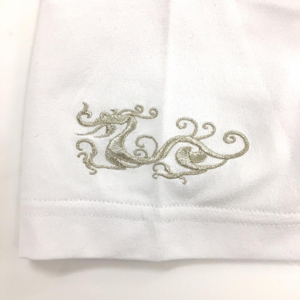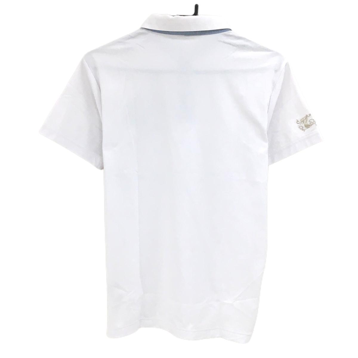 【美品】ダンスウィズドラゴン 半袖ポロシャツ 白 ワッペンライトブルー 襟先しわ メンズ 2(M) ゴルフウェア Dance With Dragon