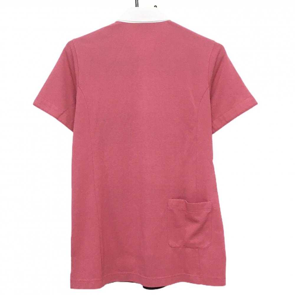 マンシングウェア 半袖ポロシャツ ピンク×ネイビー 前面ボーダー ワッペン レディース L ゴルフウェア Munsingwear