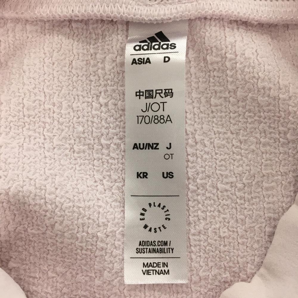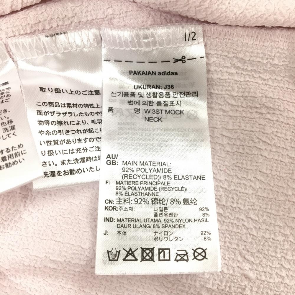 【美品】アディダス 半袖ハイネックシャツ パウダーピンク ストレッチ 肩3ライン レディース OT (XL) ゴルフウェア adidas