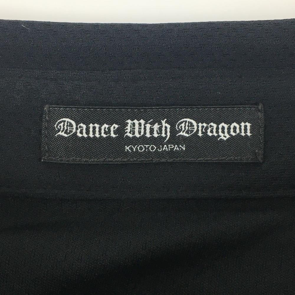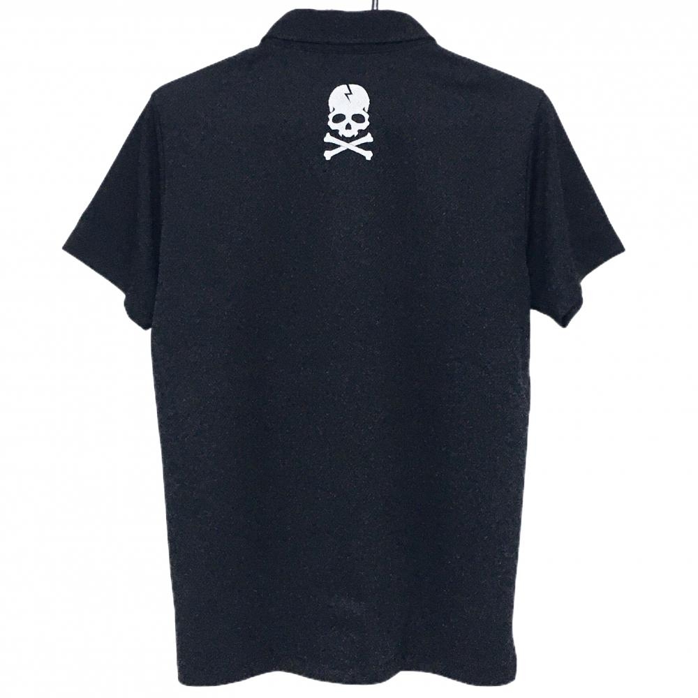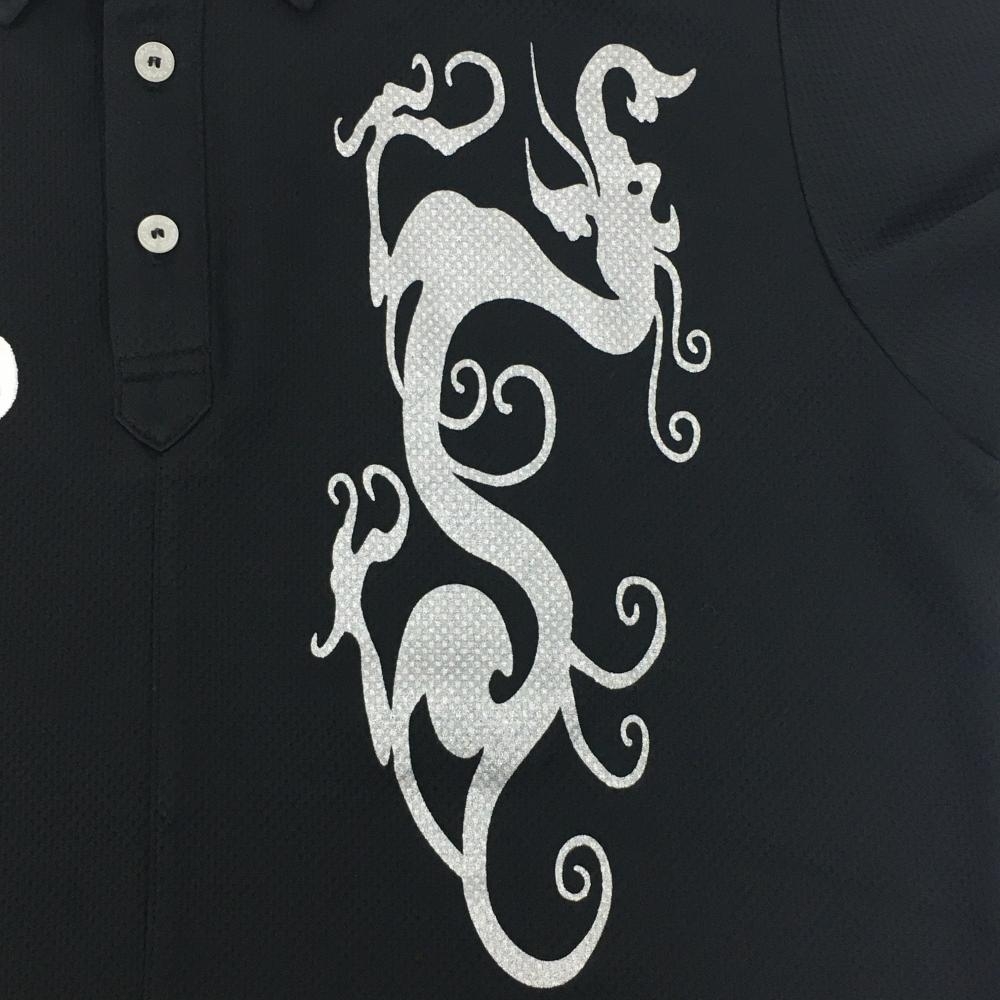 【美品】ダンスウィズドラゴン 半袖ポロシャツ 黒×シルバー ロゴ刺しゅう 背面スカル メンズ 3(L) ゴルフウェア Dance With Dragon