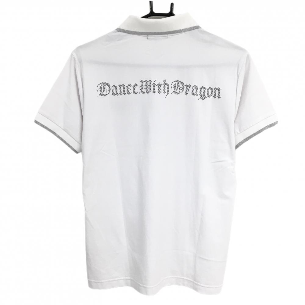 【超美品】ダンスウィズドラゴン 半袖ポロシャツ 白 刺しゅうシルバー メンズ 2(M) ゴルフウェア Dance With Dragon