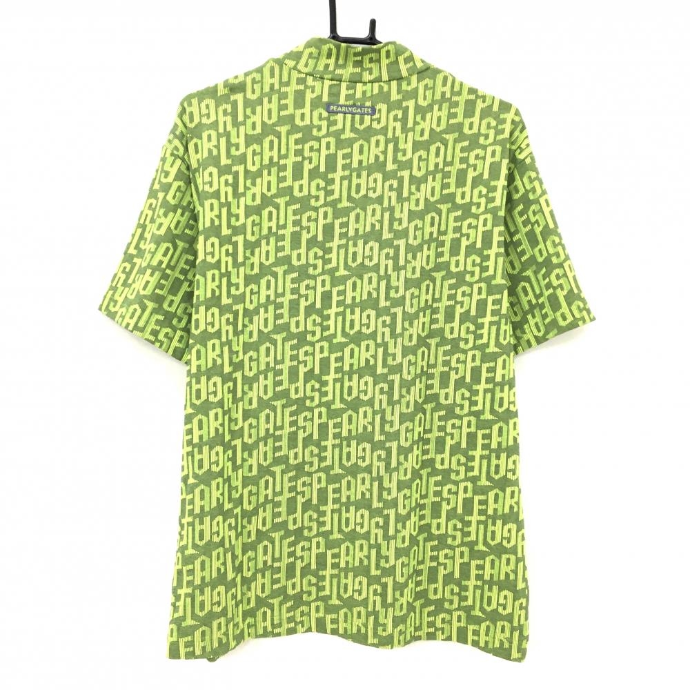 【超美品】パーリーゲイツ 半袖ハイネックシャツ グレー系×グリーンイエロー系 メンズ 5(L) ゴルフウェア 2024年モデル PEARLY GATES
