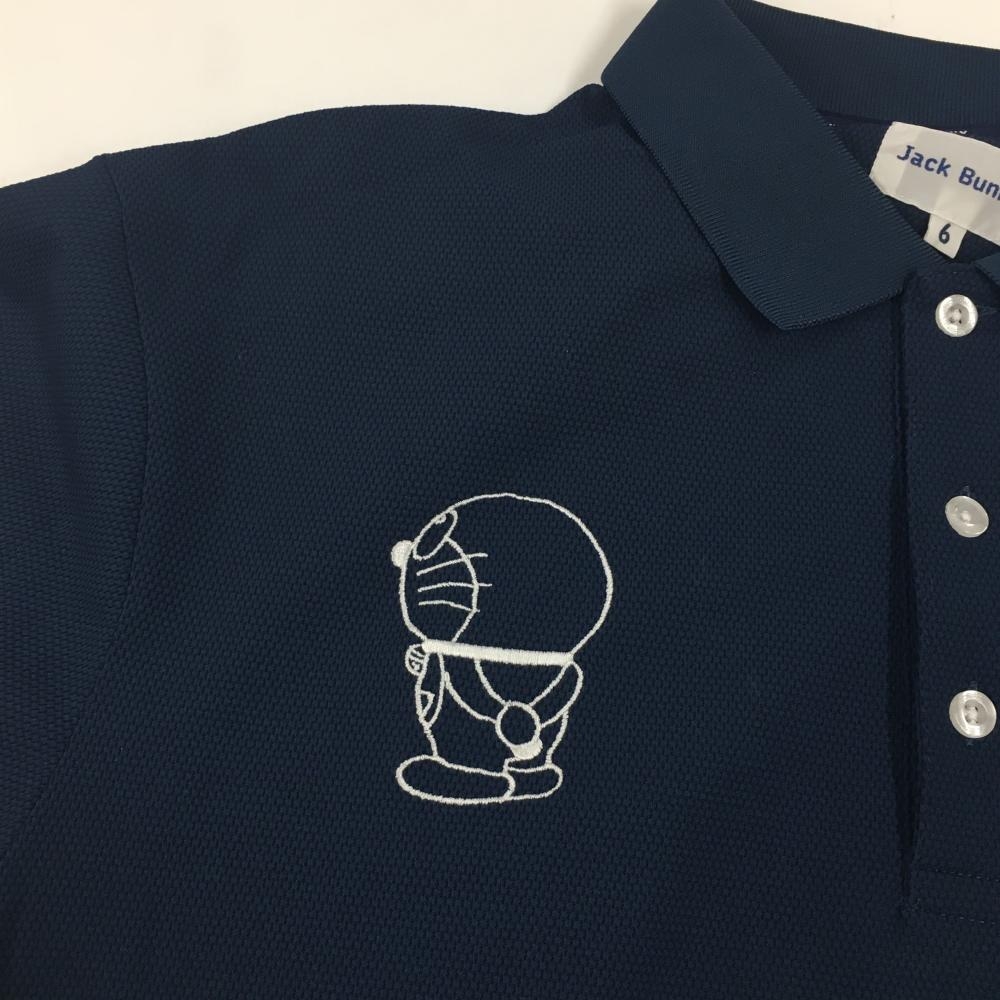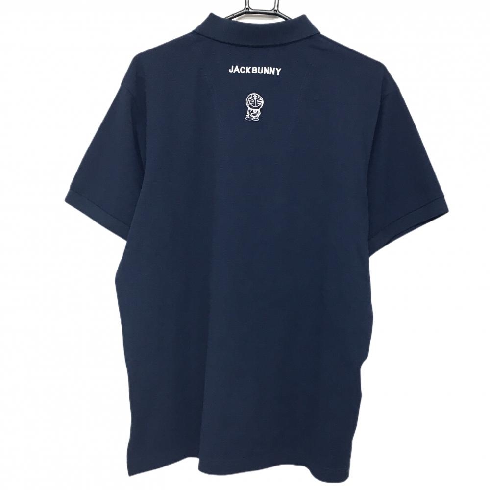 【美品】ジャックバニー×ドラえもん 半袖ポロシャツ ネイビー×白 胸ロゴ刺しゅう メンズ 6(XL) ゴルフウェア 2024年モデル Jack Bunny