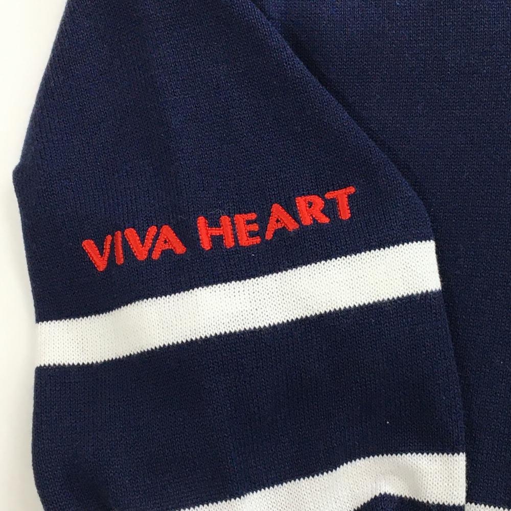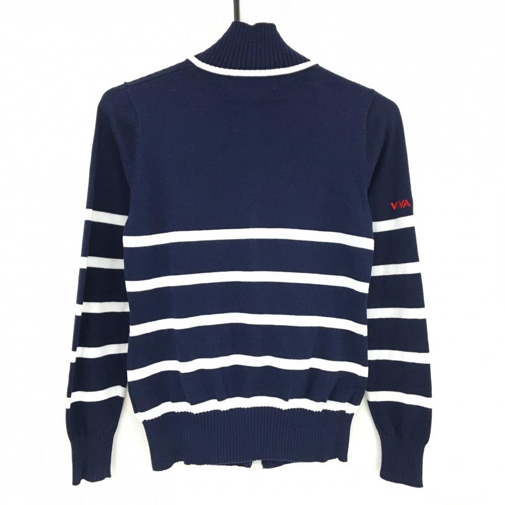 ビバハート ニットジャケット ネイビー×白 ボーダー 胸ロゴ レディース 40(M) ゴルフウェア VIVA HEART