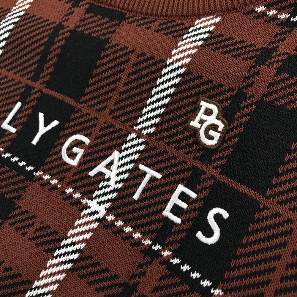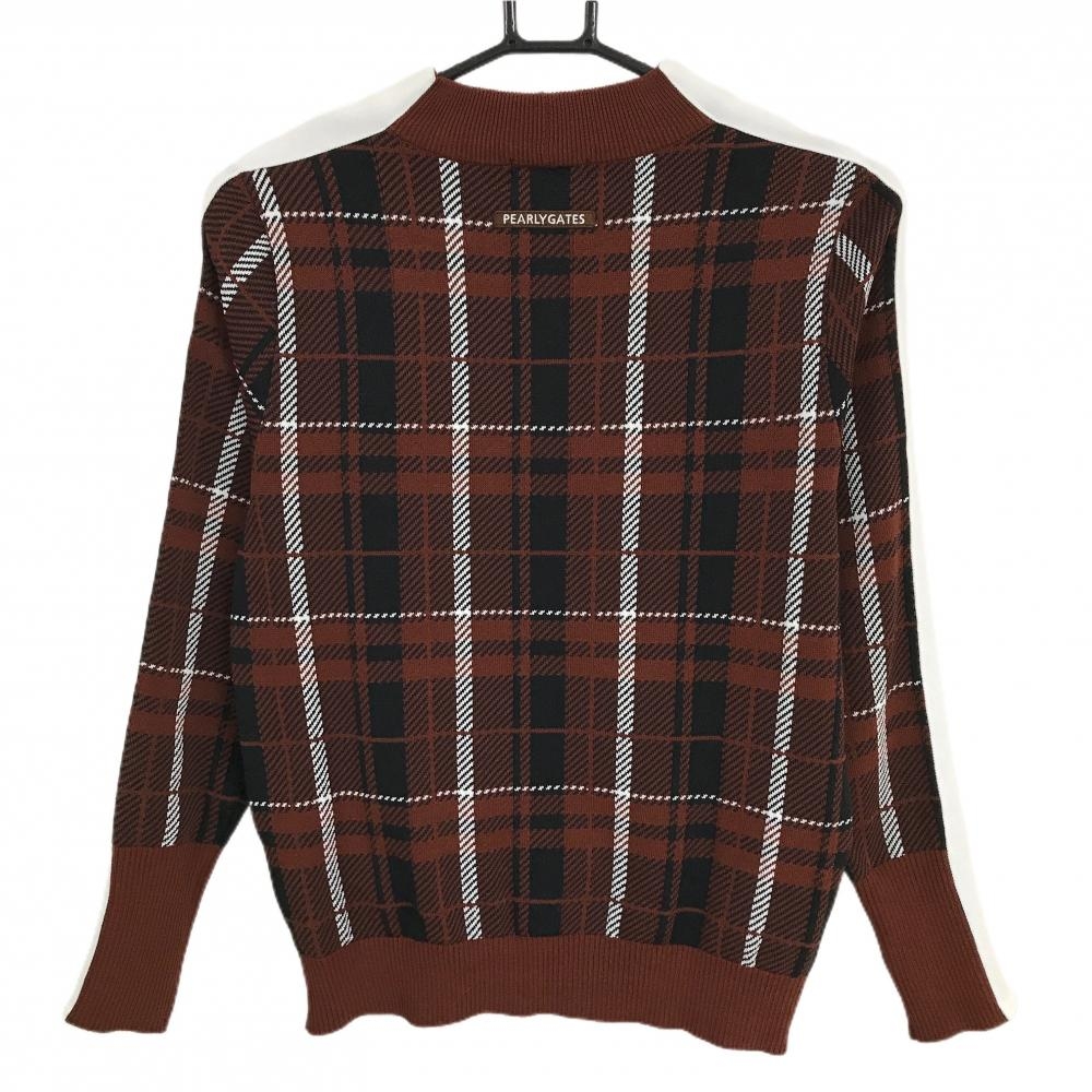 【超美品】パーリーゲイツ セーター ブラウン×白×黒 チェック ニット レディース 0(S) ゴルフウェア PEARLY GATES