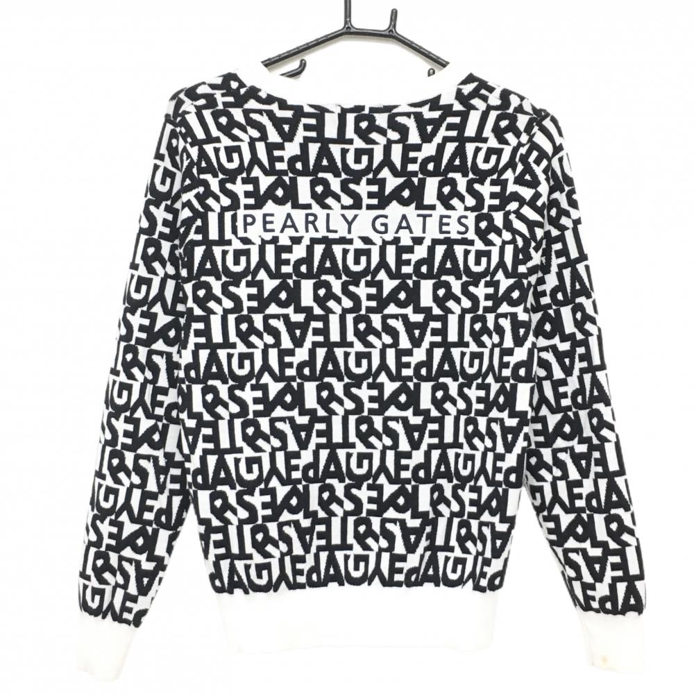 パーリーゲイツ セーター 白×黒 英字総柄 ニット コットン100% レディース 0(S) ゴルフウェア 2024年モデル PEARLY GATES