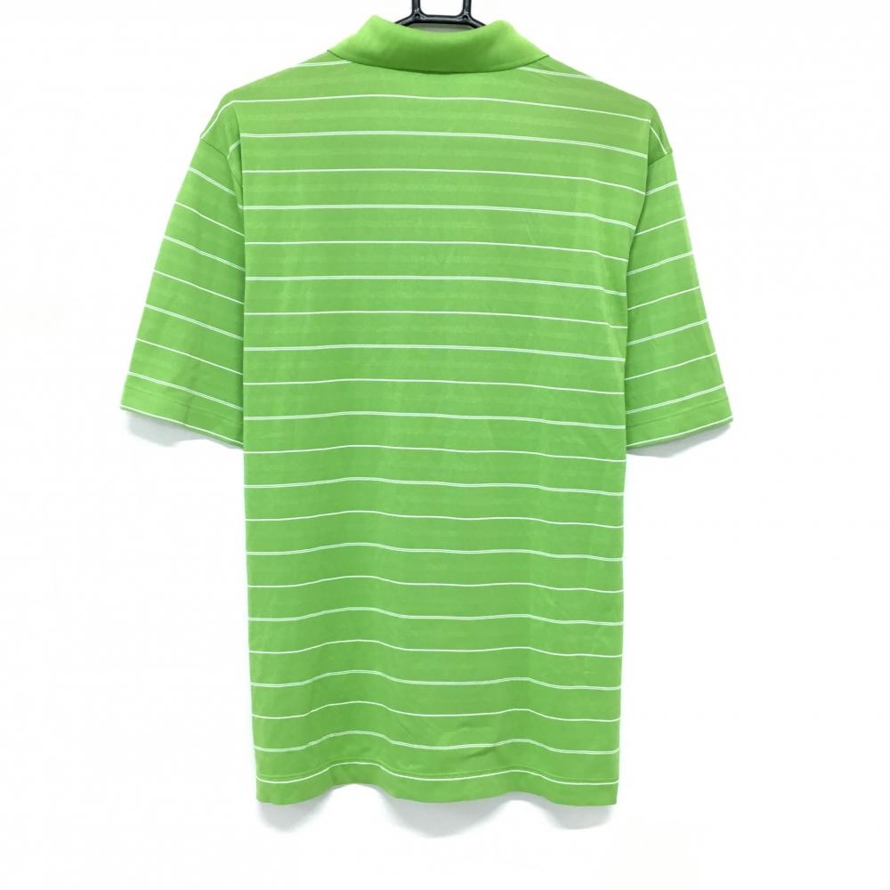 【美品】ナイキゴルフ 半袖ポロシャツ ライトグリーン×白 ボーダー ロゴ刺しゅう DRI-FIT メンズ L ゴルフウェア NIKE