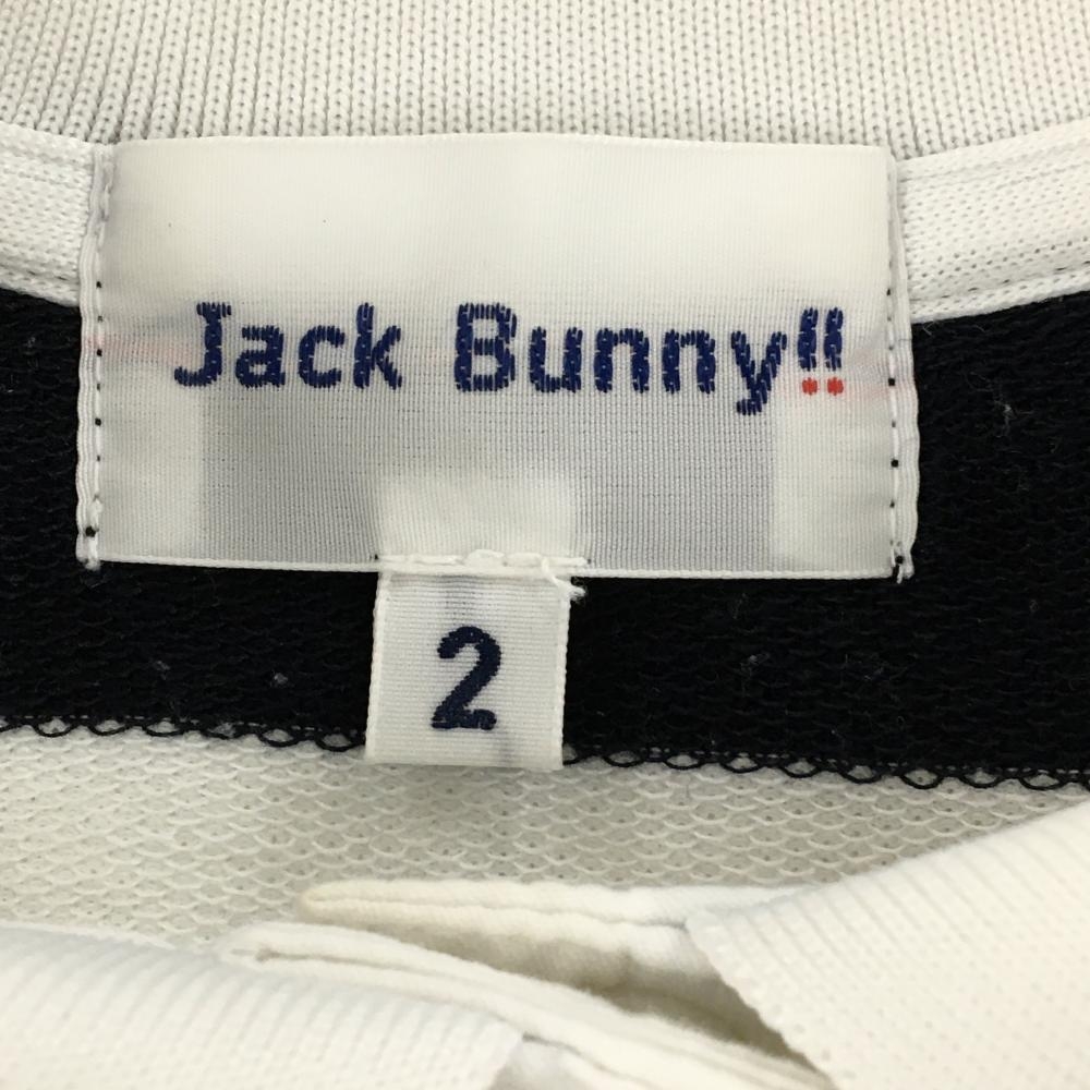ジャックバニー 半袖ポロシャツ 白×ネイビー ボーダー レディース 2(L) ゴルフウェア 2025年モデル Jack Bunny