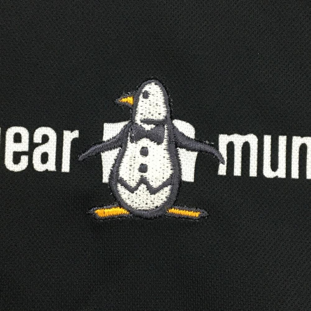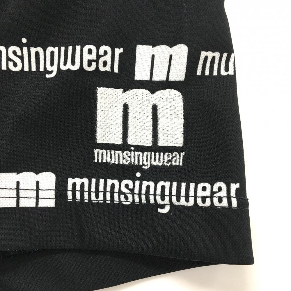 【超美品】マンシングウェア 半袖ポロシャツ 黒×白 ロゴボーダー ロゴ刺しゅう レディース L ゴルフウェア Munsingwear