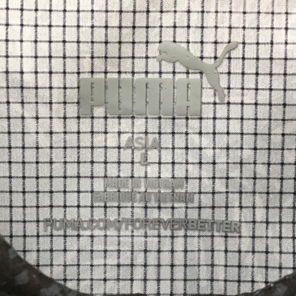 【超美品】プーマ 半袖シャツ 黒系×ブルーグレー系 総柄 リーフ 胸ロゴプリント メンズ L ゴルフウェア PUMA