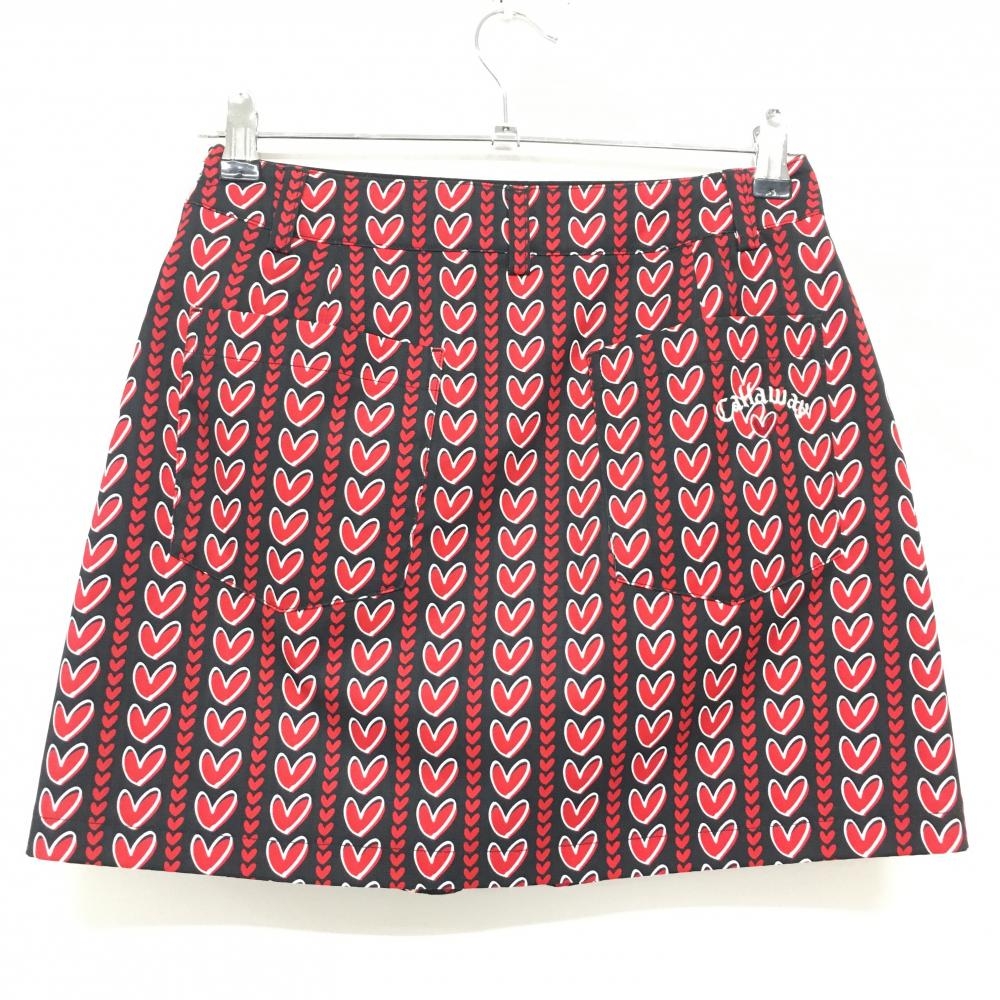 【超美品】キャロウェイ スカート 黒×レッド ハート総柄 内側パンツ レディース S ゴルフウェア 2025年モデル Callaway
