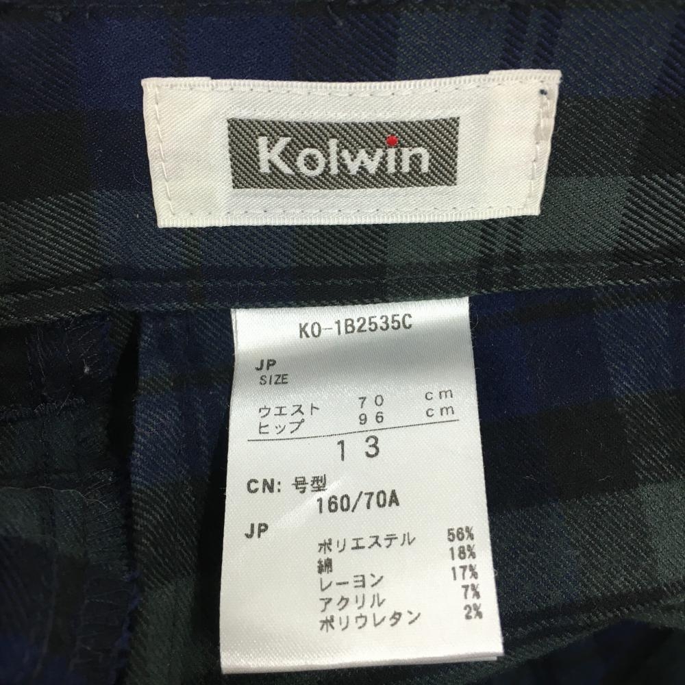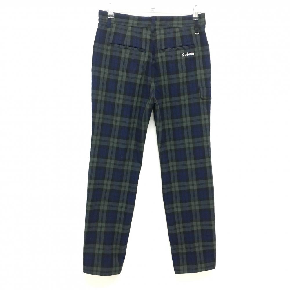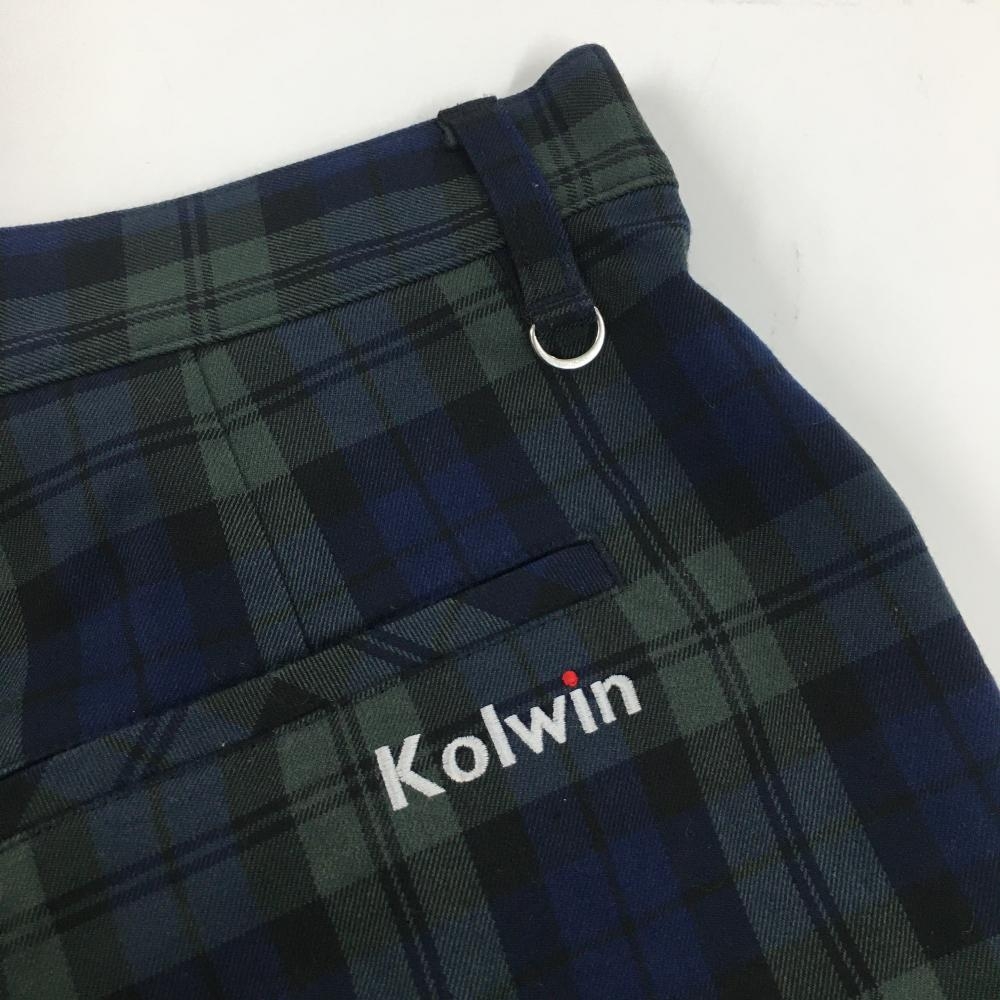 【超美品】コルウィン パンツ グリーン系×ネイビー チェック柄 バックロゴ レディース 13 ゴルフウェア Kolwin