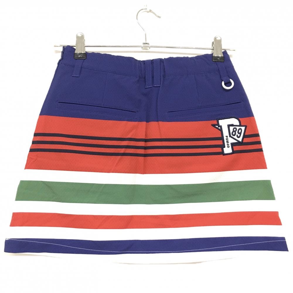 【新品】パーリーゲイツ スカート ブルー×レッド ボーダー調 織生地 フロントロゴ レディース 00(XS) ゴルフウェア PEARLY GATES