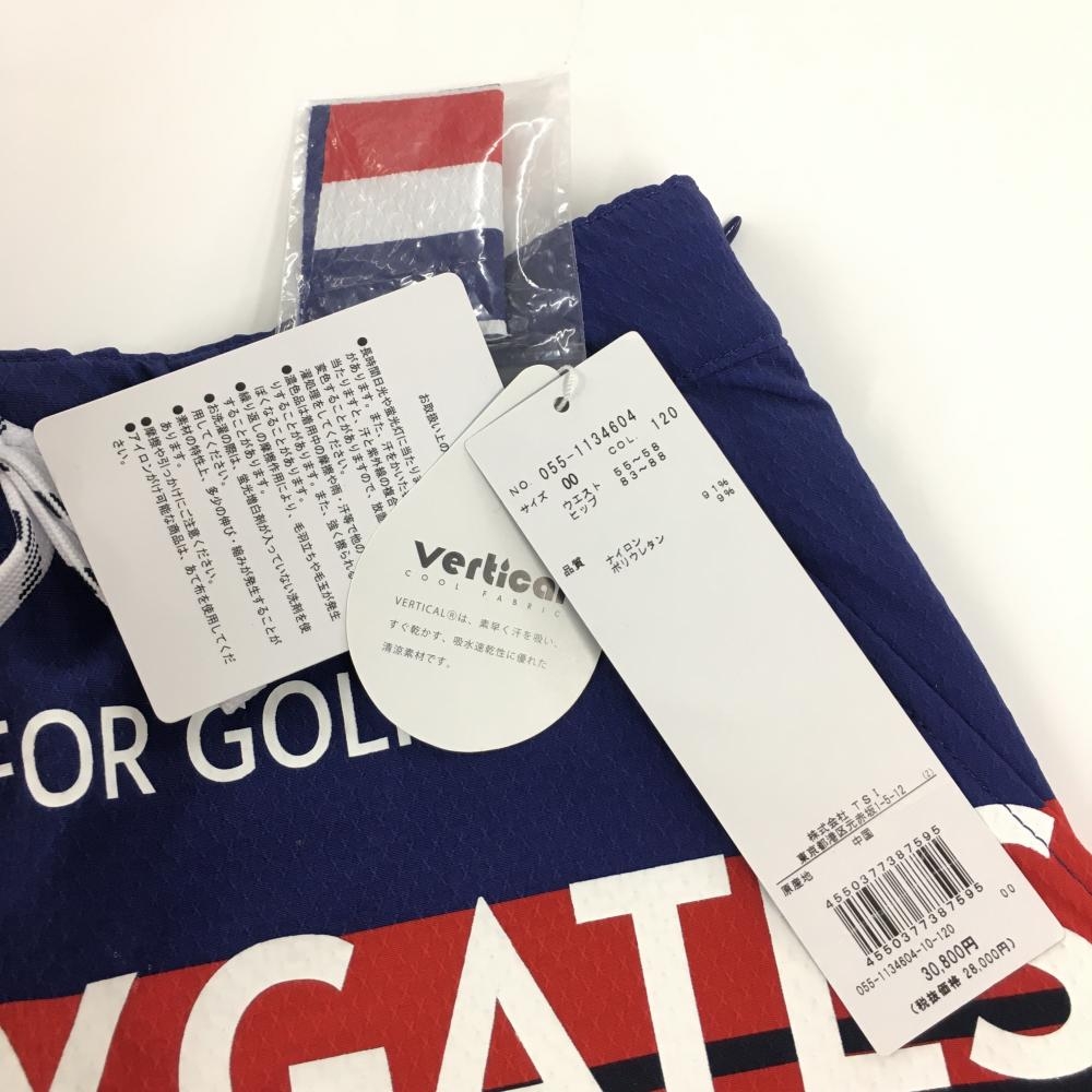 【新品】パーリーゲイツ スカート ブルー×レッド ボーダー調 織生地 フロントロゴ レディース 00(XS) ゴルフウェア PEARLY GATES