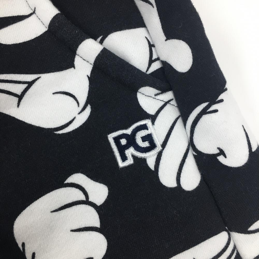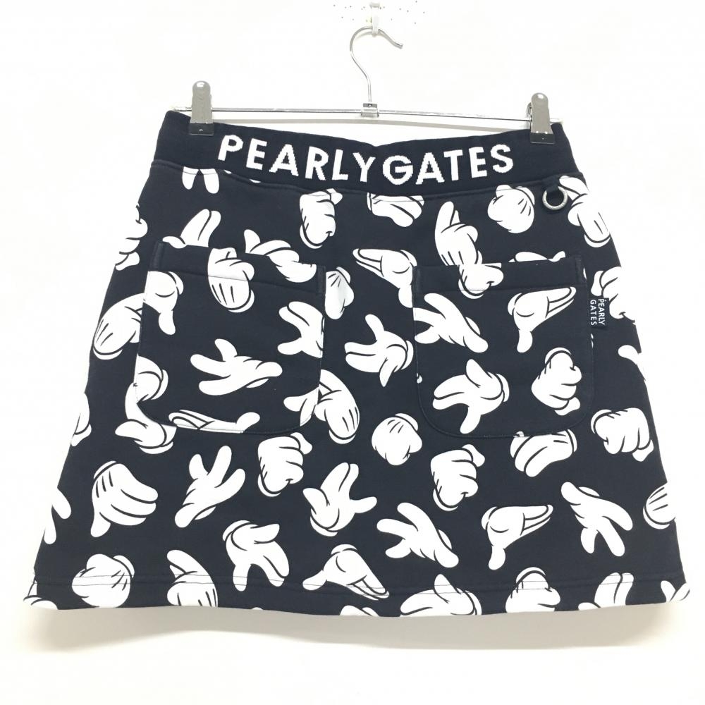 【美品】パーリーゲイツ×Disney スウェットスカート 黒×白 ミッキーの手総柄 裏起毛 レディース 1(M) ゴルフウェア PEARLY GATES