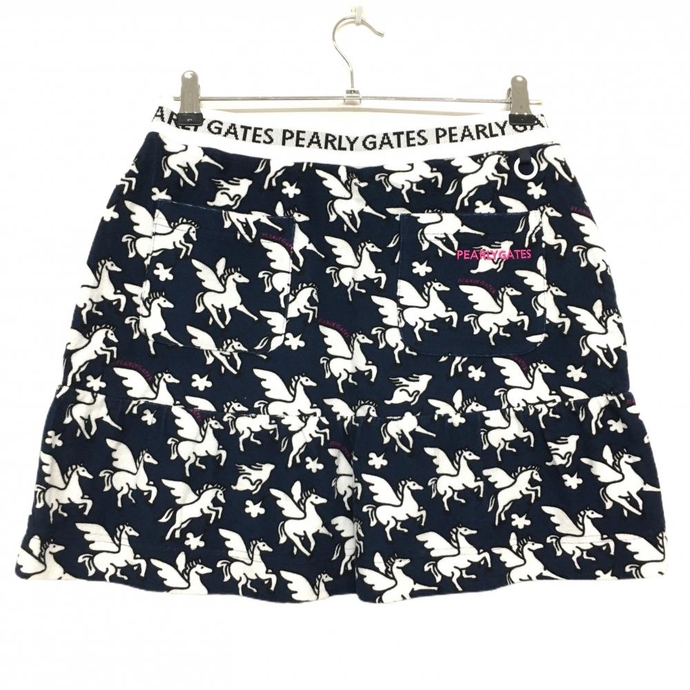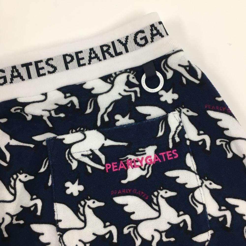 【新品】パーリーゲイツ スカート ネイビー×白 ペガサス柄 パイル地 ウエストゴム レディース 1(M) ゴルフウェア PEARLY GATES
