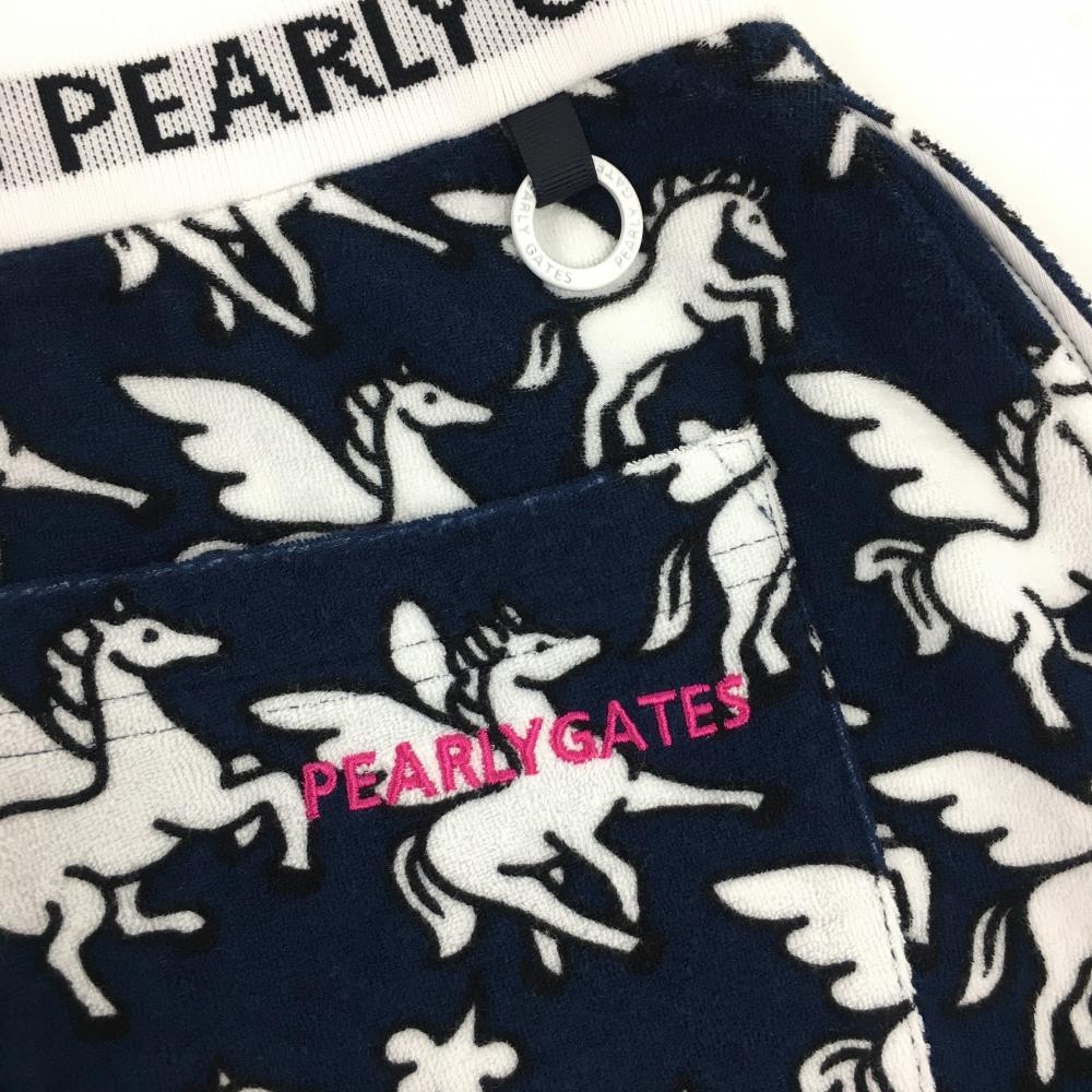【新品】パーリーゲイツ スカート ネイビー×白 ペガサス柄 パイル地 ウエストゴム レディース 1(M) ゴルフウェア PEARLY GATES